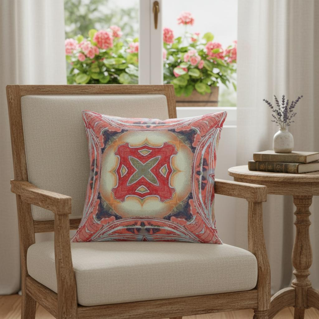 geo tribal suede throw pillow, 18 peach red, tribal suede throw pillow, peach red geo tribal suede, suede throw pillow |