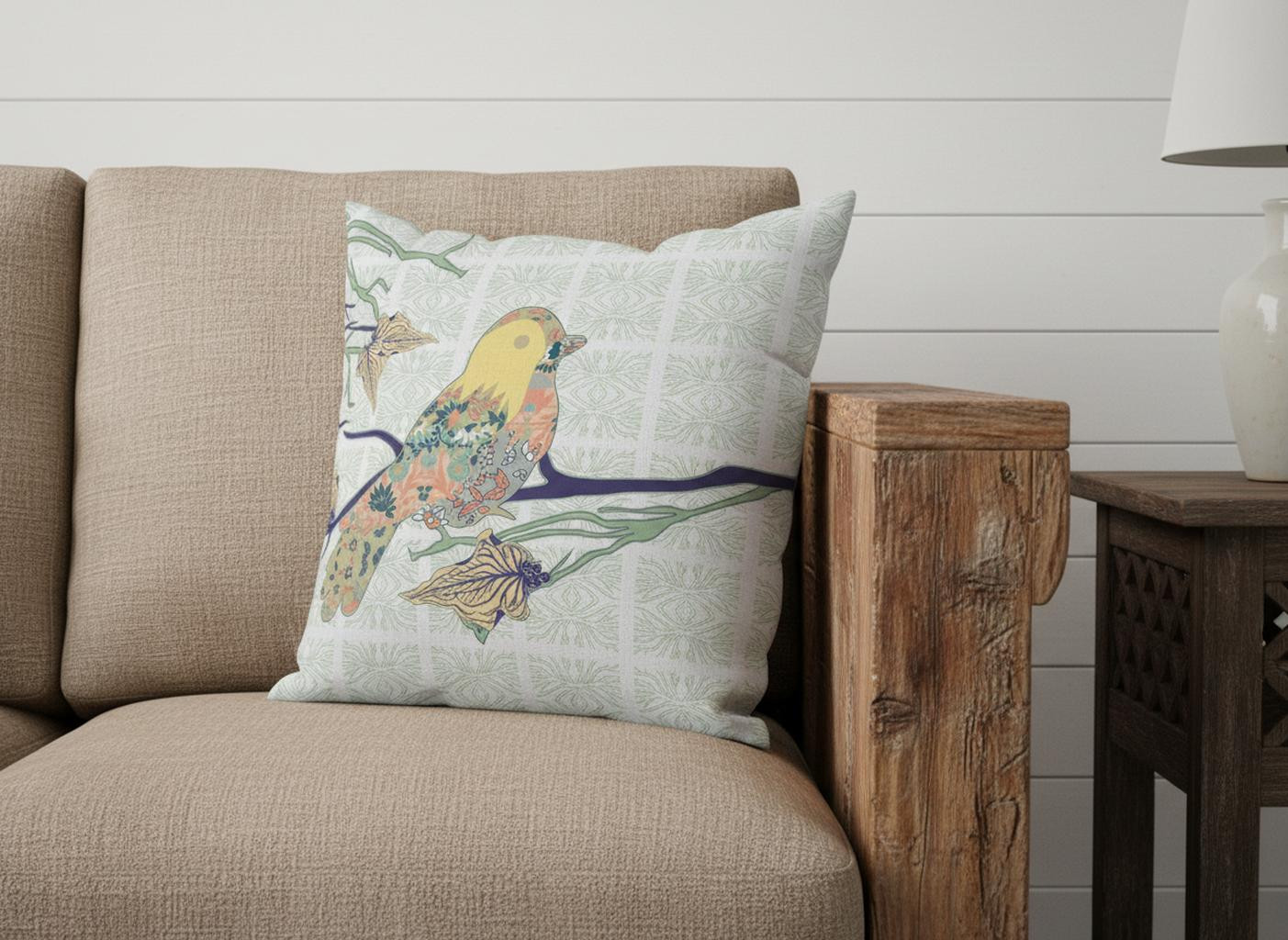 Combining elements of nature with a casual print, this Light Green Sparrow Suede Throw Pillow Pillow is the classic bohemian décor item to add to your home. A sparrow printed in varying patterns against the light green and white base makes this decorative pillow a piece of art to behold. The deluxe suede fabric featured on the throw pillow gives it a premium feel while also being durable to last for a long time. The versatile blown pillow is also soft to the touch, given its lush polyfill insert, making it super fluffy and comfortable. If you want to induce an artistic fusion of traditional and bohemian style, opt for this throw pillow to spruce up your living room. 16” x 16” x 5”