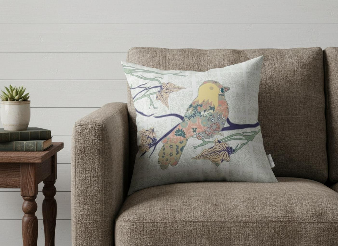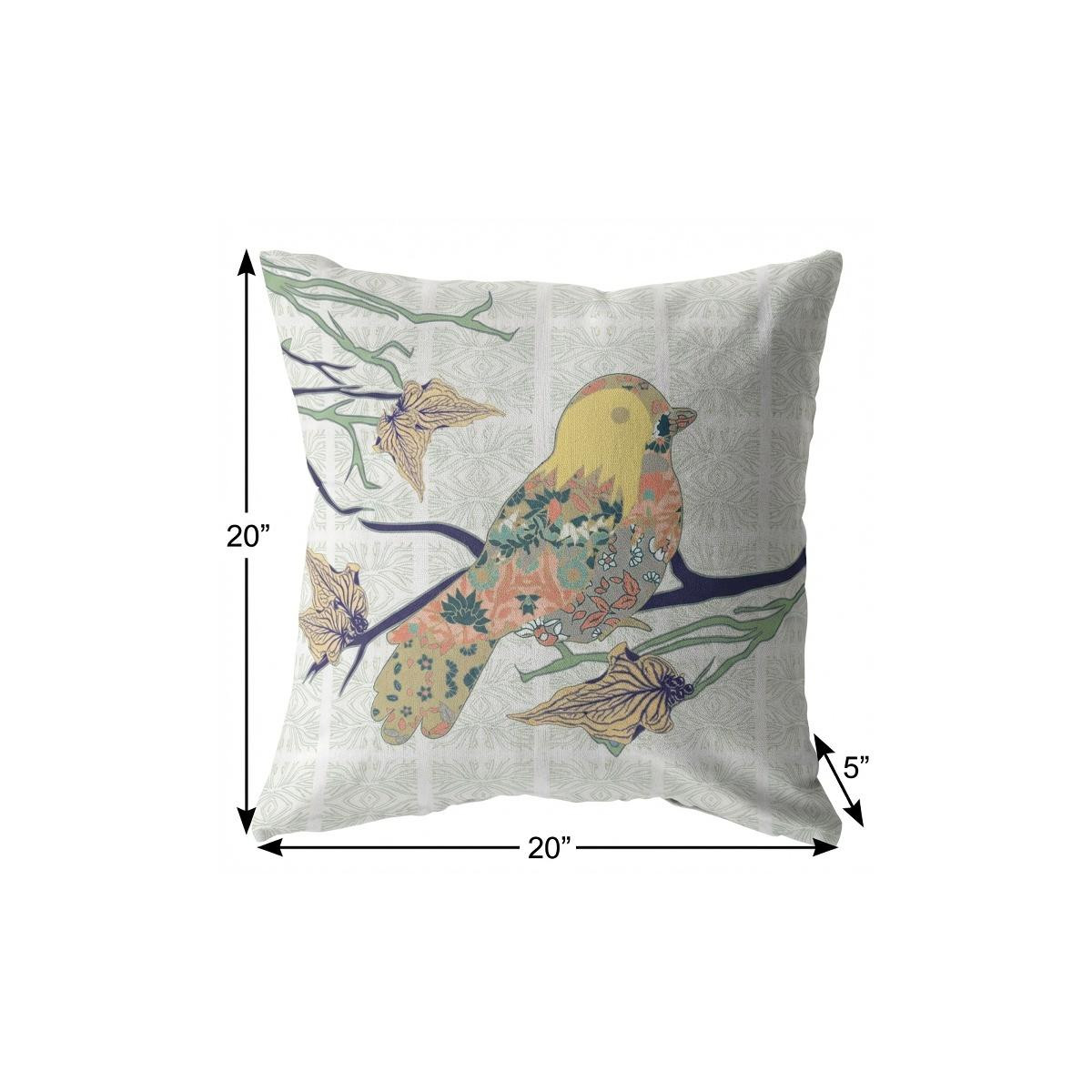 Combining elements of nature with a casual print, this Light Green Sparrow Suede Throw Pillow Pillow is the classic bohemian décor item to add to your home. A sparrow printed in varying patterns against the light green and white base makes this decorative pillow a piece of art to behold. The deluxe suede fabric featured on the throw pillow gives it a premium feel while also being durable to last for a long time. The versatile blown pillow is also soft to the touch, given its lush polyfill insert, making it super fluffy and comfortable. If you want to induce an artistic fusion of traditional and bohemian style, opt for this throw pillow to spruce up your living room. 20” x 20” x 5”