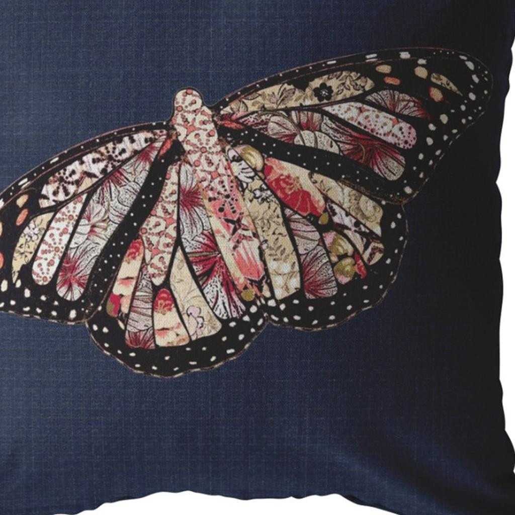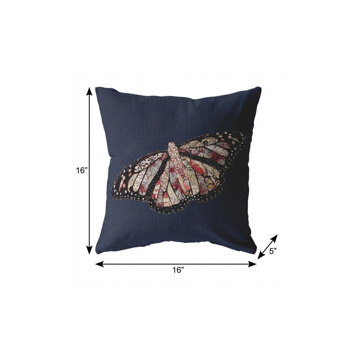 Grant a subtle rustic essence to seep into your humble dorms with this stunning Denim Blue Butterfly Suede Throw Pillow featuring a very casual yet elegant appeal. The denim blue backdrop beautifully brings out the artistic flair of the multicolored butterfly motif in classy shades of cream, rose red, pale pink and a black border. This decorative pillow is made from premium quality leather-like suede fabric for enhanced durability and utmost softness, making it a plush accent piece for your home. To ensure a fluffy look with a soft and cozy feel, this pillow is blown and filled with a durable polyfill insert for a comfortable resting experience. If you want to beautify your home with an accent that’s both pleasing to the eye and comfy, this decorative throw pillow is perfect for you. 16” x 16” x 5”