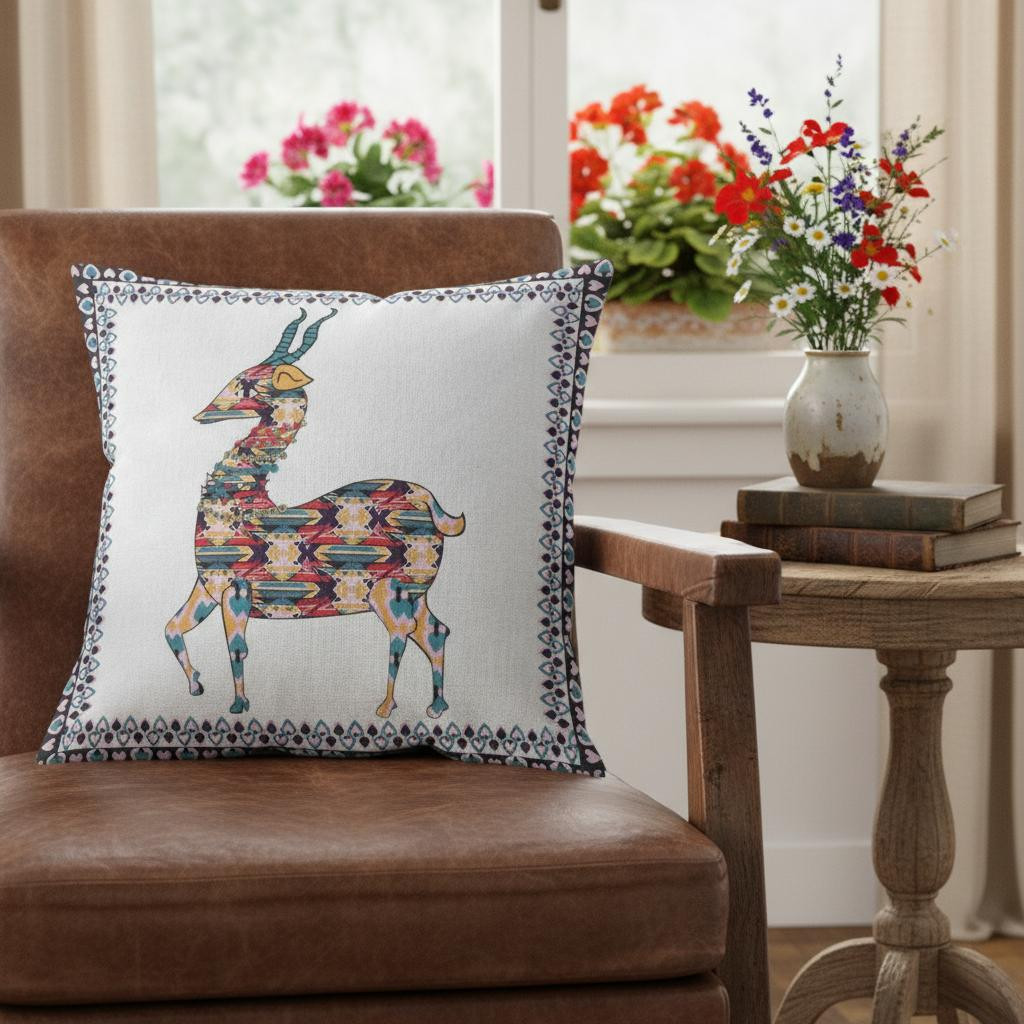 Revamp the look of your home with this classy Blue White Boho Deer Suede Throw Pillow that induces an air of boho-chic beauty. A sophisticated color palette of red, blue, and white tones combined with a traditional deer print gives this pillow an inviting allure. The smooth and silky texture of the suede fabric provides an opulent and sumptuous look while promising enhanced longevity for years to come. Featuring a soft polyfill insert, this blown and closed throw pillow is very fluffy and super comfortable to lean on for maximizing comfort. Adorn your living room with this bohemian pillow that invites your loved ones to stay for longer with its traditional charm. 20” x 20” x 5”