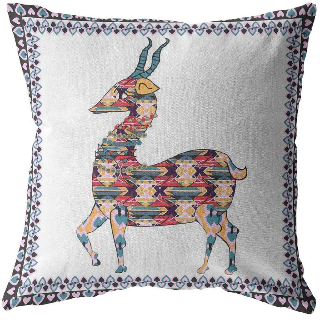 boho deer suede throw pillow, deer suede throw pillow, blue white boho deer suede, white boho deer suede throw, 20 blue white boho deer |