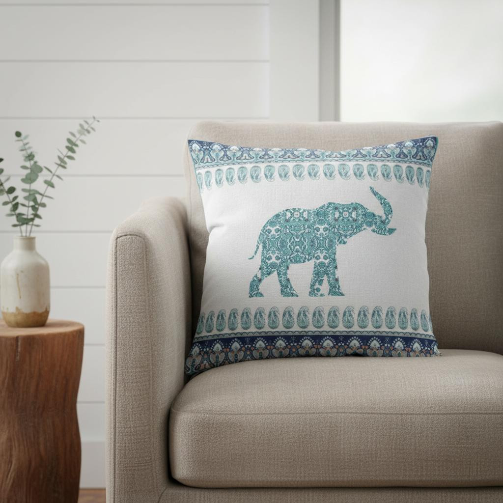 ornate elephant suede throw pillow, 20 teal ornate elephant suede, elephant suede throw pillow, teal ornate elephant suede throw, teal ornate elephant suede |