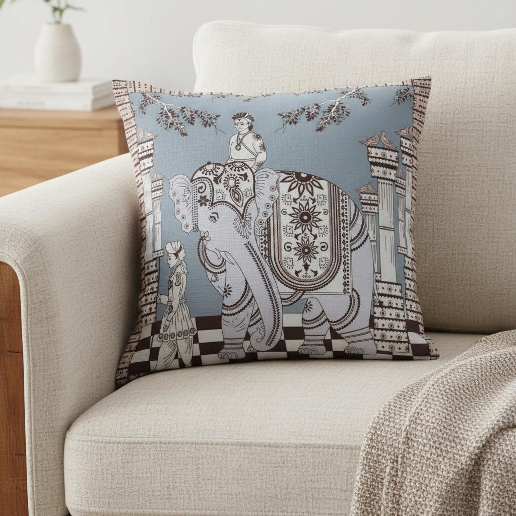 blue brown elephant throw pillow, brown elephant throw pillow, elephant throw pillow, 16" blue brown elephant throw, 16" blue brown elephant |