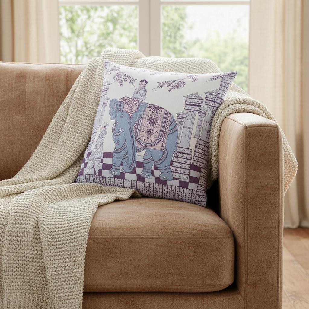 Decorate your home with this gorgeous Blue Purple Ornate Elephant Suede Throw Pillow that can become the bohemian centerpiece in your living space. Flaunting an intricately detailed traditional illustration in steel blue, pale pink, and deep purple over a white-toned base, this pillow will undoubtedly be an element of interest in the room to allure the gaze of the guests. Crafted from a sturdy suede fabric, the pillow ensures durability with a soft and smooth texture, ideal for everyday use. The blown pillow is filled with high-quality polyester filling to give that airy, soft feel, making it very comfortable to lean on. If you want a uniquely designed traditional element to add to your living space, this decorative throw pillow is just the perfect piece of décor to adorn your home without being too loud. 16” x 16” x 5”
