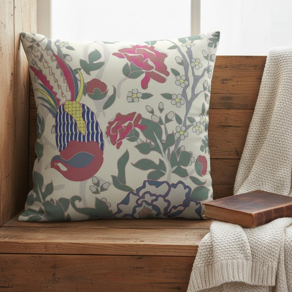 Combining botanical elements with an avian print, this Pink Sage Peacock Suede Throw Pillow is the perfect representation of spring to bring life into your bohemian-style home. Featuring sage green leafy elements with burgundy and gray-toned floral art combined with a multi-colored printed peacock against the white background makes for the perfect playground of spring elements all on a throw pillow. Made from high-quality suede fabric for a durable structure and premium feel, it's the perfect accent for adding a touch of class and comfort to your home. The polyfill insert makes it super soft and cozy with added fluffiness providing utmost comfort to your neck and back. The alluring print coupled with the cool-toned hues melds together to make this throw pillow a flawless piece of art, fit for any bohemian-inspired home. 18” x 18” x 5”