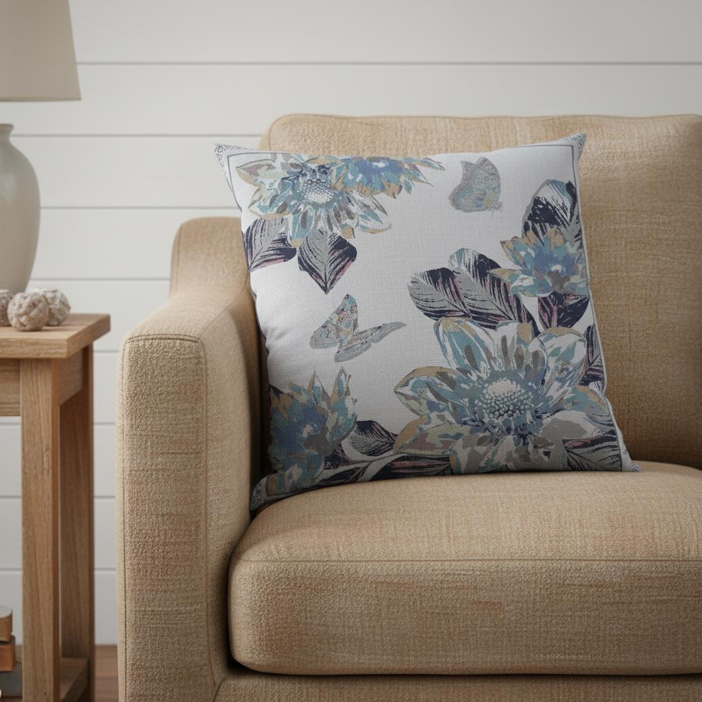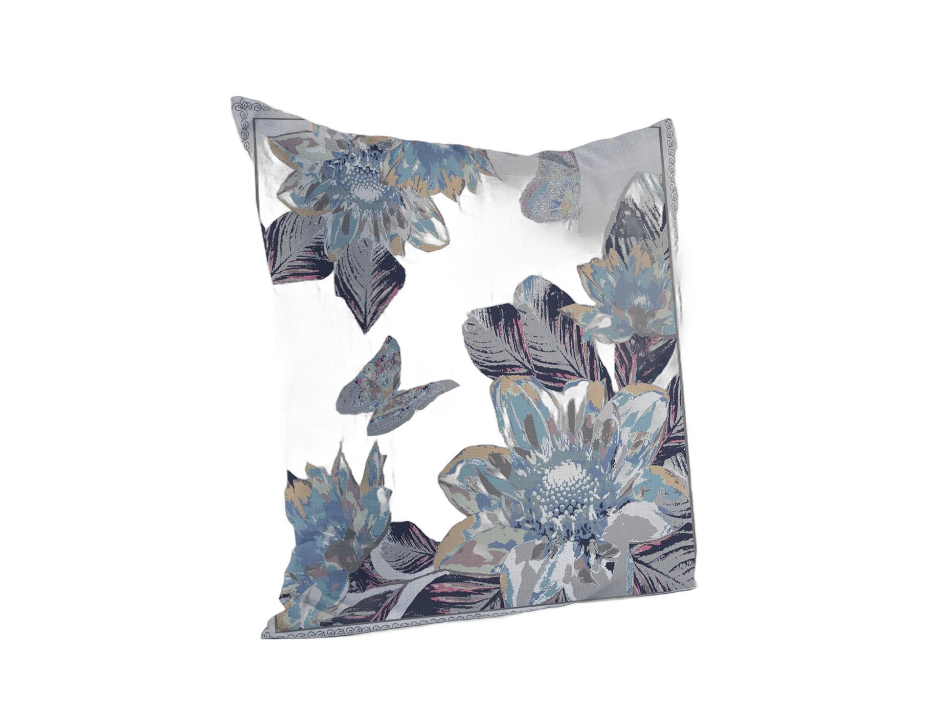 Combining floral elements with the beauty of fauna, this Gray White Butterfly Suede Throw Pillow is sure to uplift the décor of your home and make it come to life. The scintillating floral prints in a cool blue paired with the muted grays of the butterflies harmonize perfectly to induce a boho-chic aesthetic. Crafted from high-quality suede fabric for sturdy construction with a soft hand that will last for a long time and makes your space look more inviting. To ensure a fluffy look with a soft and cozy feel, this pillow is blown and closed with a durable polyfill insert for a comfortable experience. Accentuate the contemporary décor in your home with a pop of boho using the invigorating panache of this decorative throw pillow. 20” x 20” x 5”