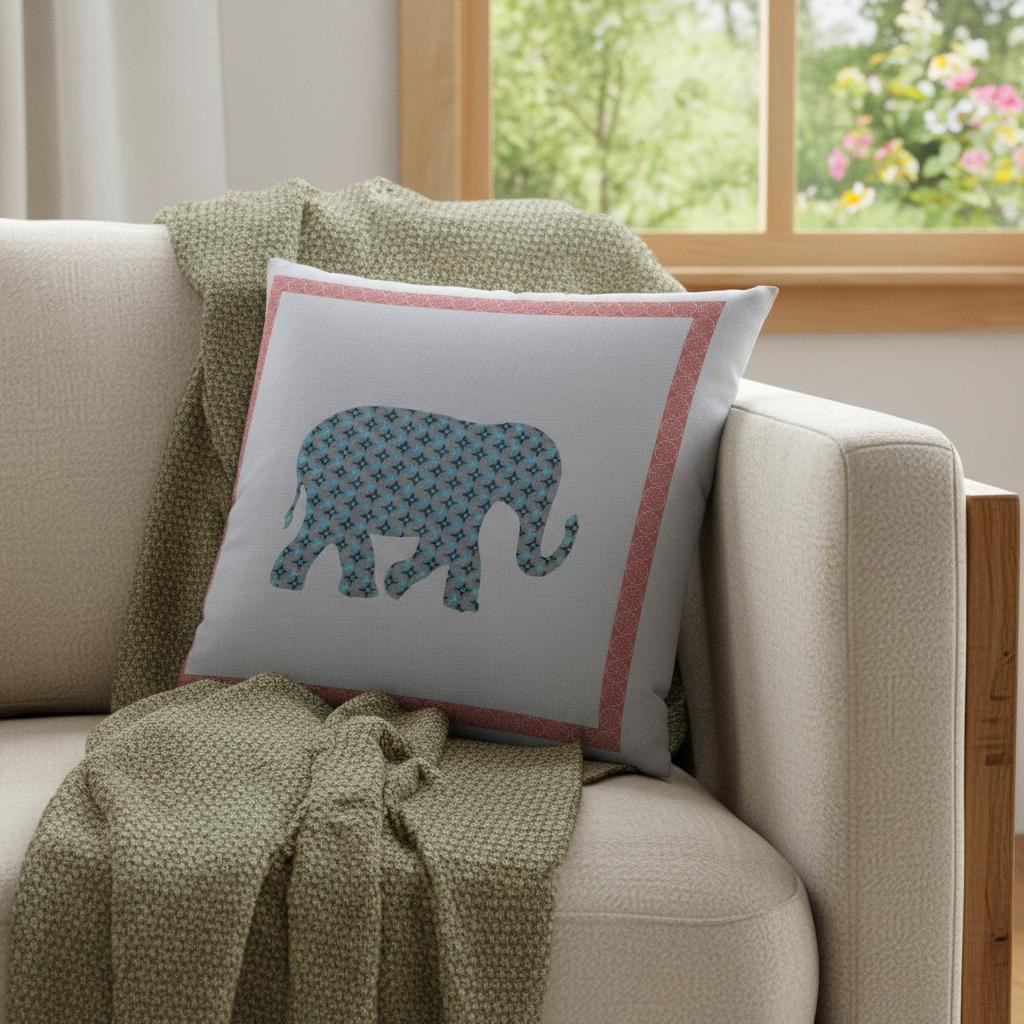 Combining an element of nature with a touch of class, this Blue Pink Elephant Boho Suede Throw Pillow will incite a simplistic boho-chic feel into your home. Flaunting an eye-catching design representing an elephant in dove gray with diamond-star motifs in aqua blue and coral pink borders, the pillow creates an enchanting visual appeal leaving viewers in awe. This decorative pillow is made from premium quality leather-like suede fabric for enhanced durability and utmost softness, making it a plush accent piece for your home. To ensure a fluffy look with a soft and cozy feel, this pillow is blown and closed with a durable polyfill insert for a comfortable experience. The delightful balance of trend and tradition in this alluring decorative throw pillow makes it a tasteful and sophisticated addition to any boho-chic home. 18” x 18” x 5”