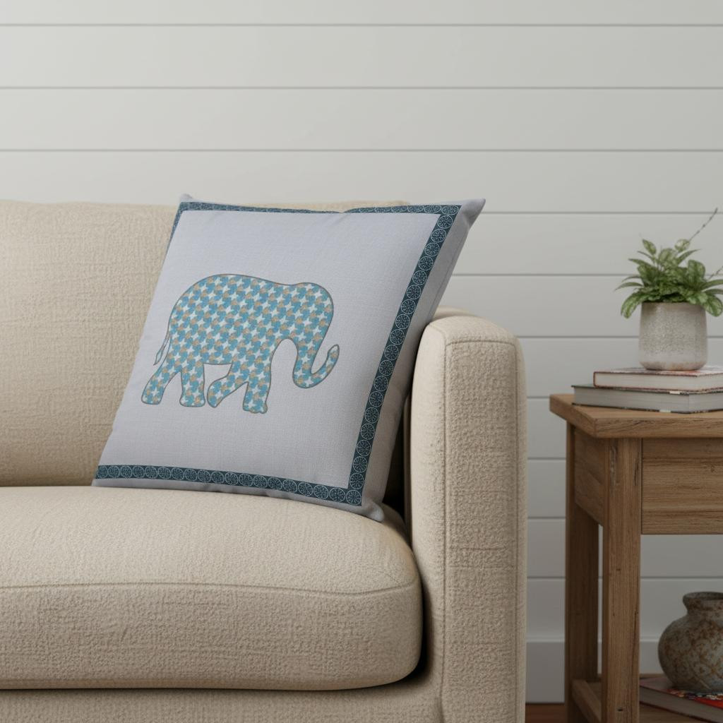 elephant boho suede throw pillow, 20 blue white elephant boho, boho suede throw pillow, blue white elephant boho suede, white elephant boho suede throw |