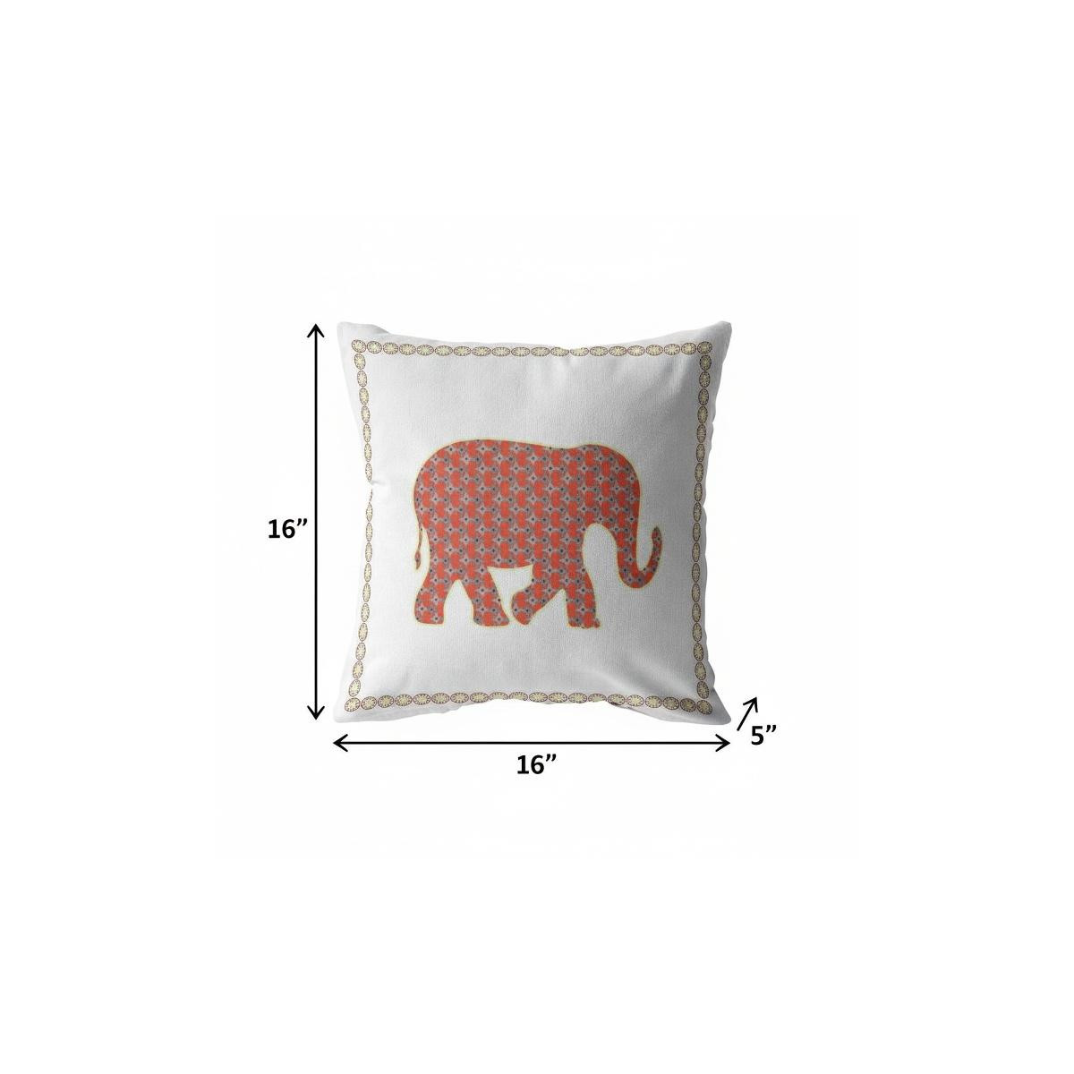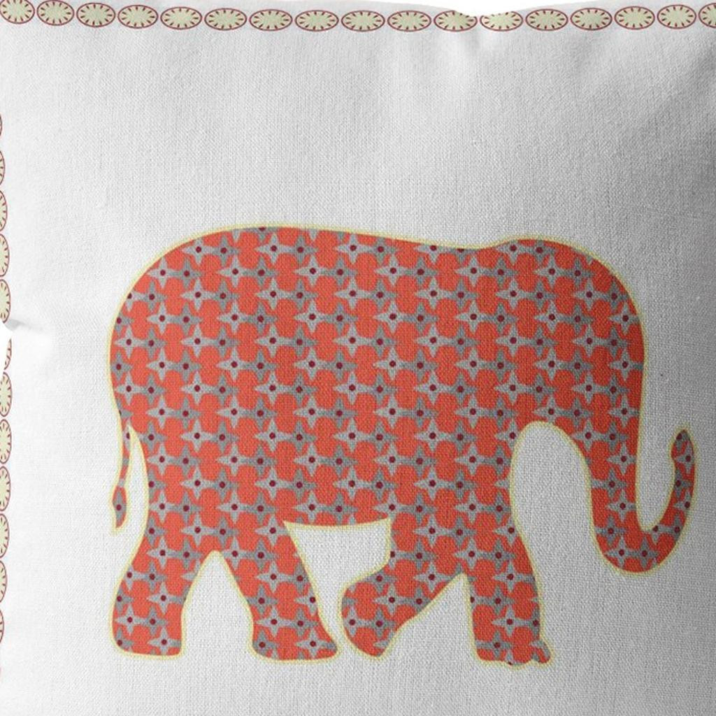 elephant boho suede throw pillow, 16 orange white elephant boho, boho suede throw pillow, orange white elephant boho suede, white elephant boho suede throw |