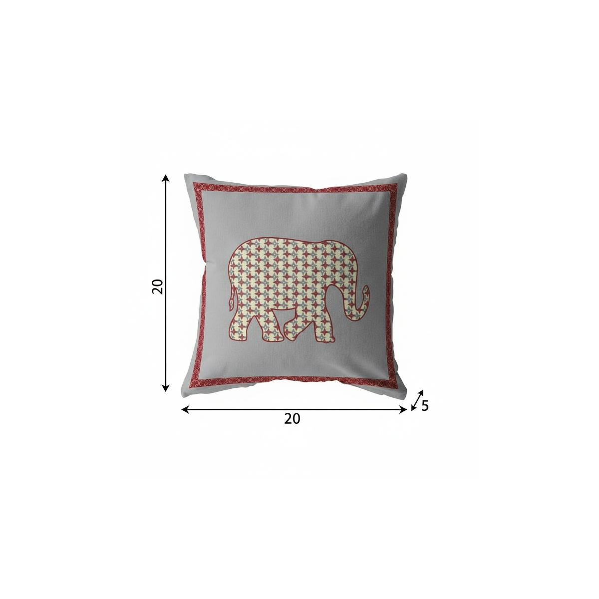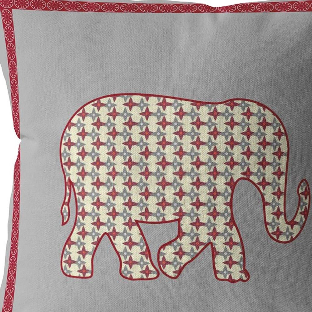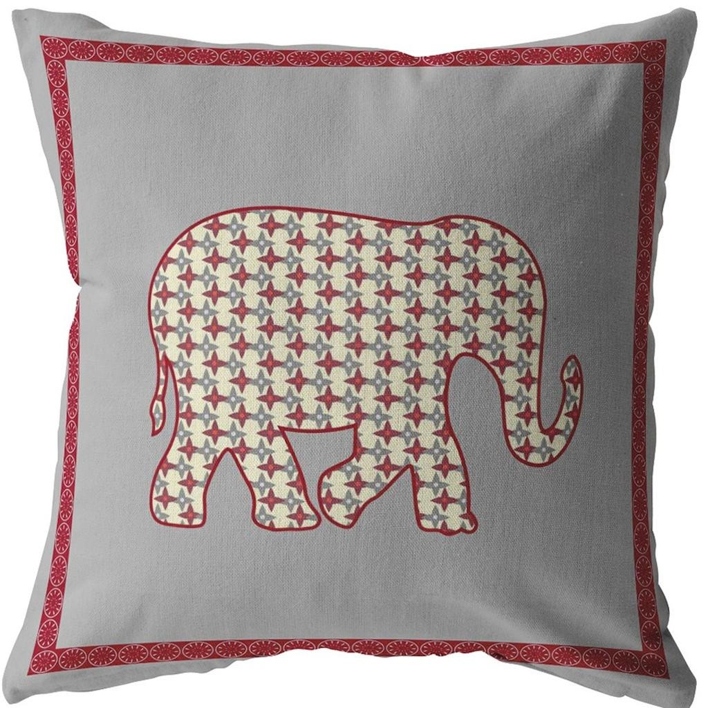elephant boho suede throw pillow, boho suede throw pillow, 20 red gray elephant boho, gray elephant boho suede throw, red gray elephant boho suede |