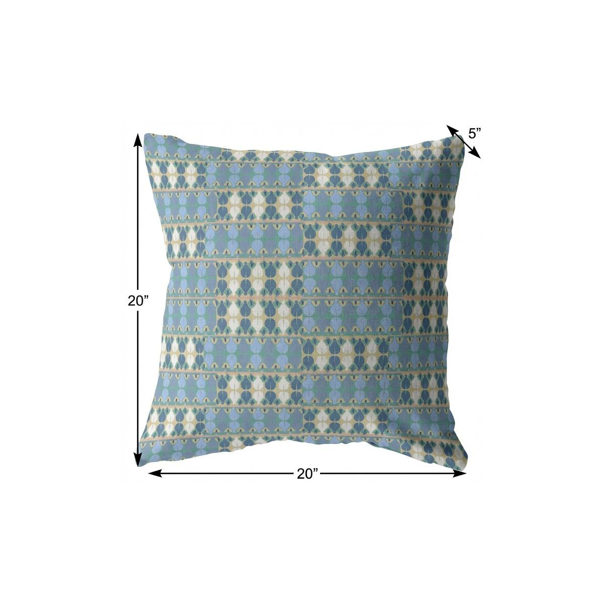 This Blue Cream Spades Suede Throw Pillow is a paradigm of bohemian décor to accompany your modern style. Painted in subtle shades of blue and cream, a geometric spade pattern ties the whole look of the pillow together to give it a stylish appearance. This blown pillow is crafted from premium-quality suede fabric which is characterized by its soft and smooth surface texture for a delicate feel. With a polyester filling insert as soft as the clouds, the blown and closed pillow is perfectly suited for you to rest your head on. Bring serenity and a breezy ambiance to your living room with this multifaceted pillow that will highlight bohemian, transitional, and modern décor. 20” x 20” x 5”