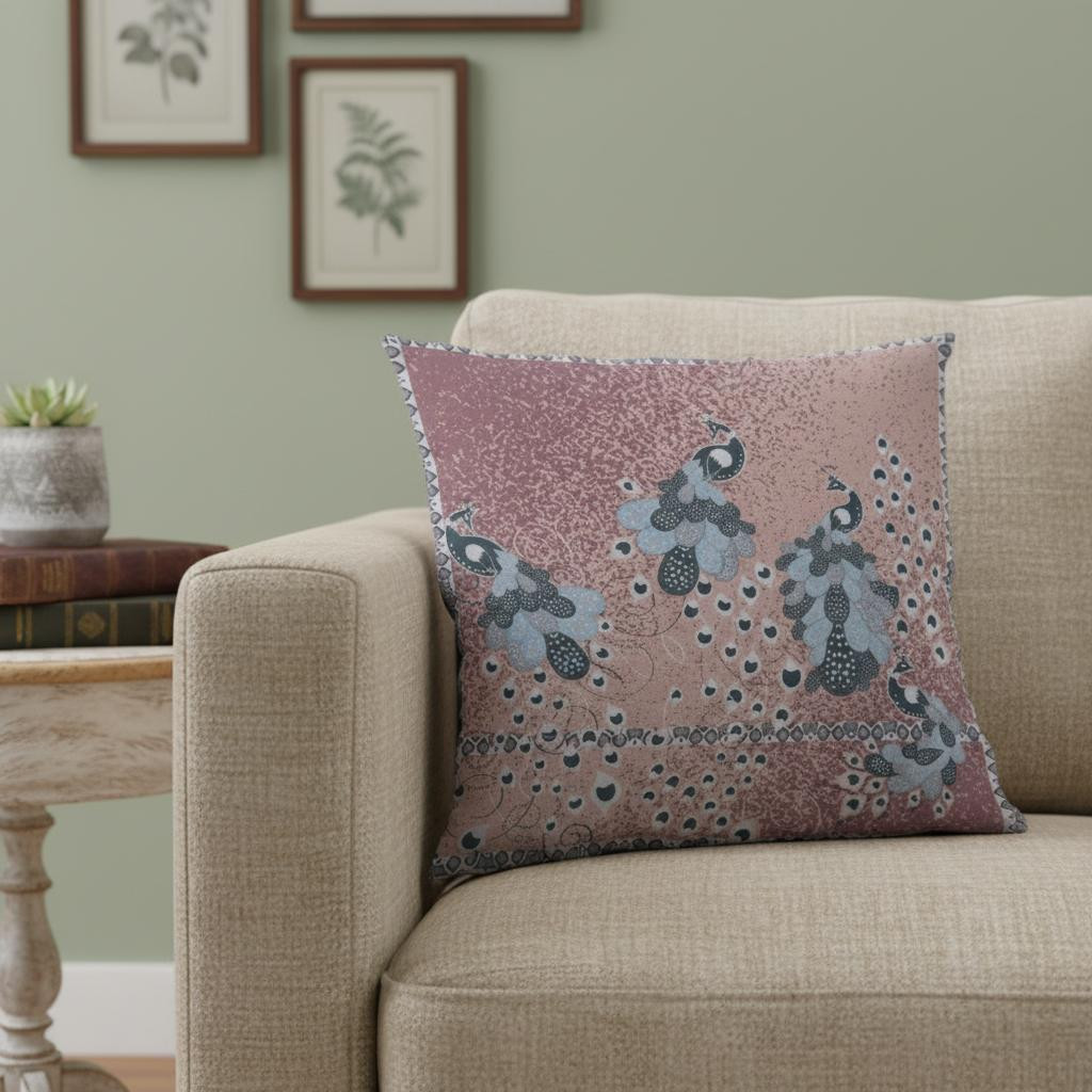 Introduce an artistic approach to your everyday décor with this delicate Dusty Pink Boho Bird Suede Throw Pillow that exudes a boho-chic aesthetic in its decorative detailing. Painted in a dusty pink color, the decorative pillow features an intricate design molding into the shape of a peacock in soft blue and black tones to create an eye-catching visual appeal. The high-quality suede fabric offers this eco-friendly pillow a luxurious appearance with a silky smooth finish while assuring long-lasting durability to serve you for years. This blown and closed throw pillow features a soft polyfill insert which makes the piece super fluffy and comfortable to support your posture when you lean on it. Enhance the contemporary aesthetics of your boho-chic living room with this stunning decorative pillow that will perfectly complement any light or bold-colored décor. 18” x 18” x 5”