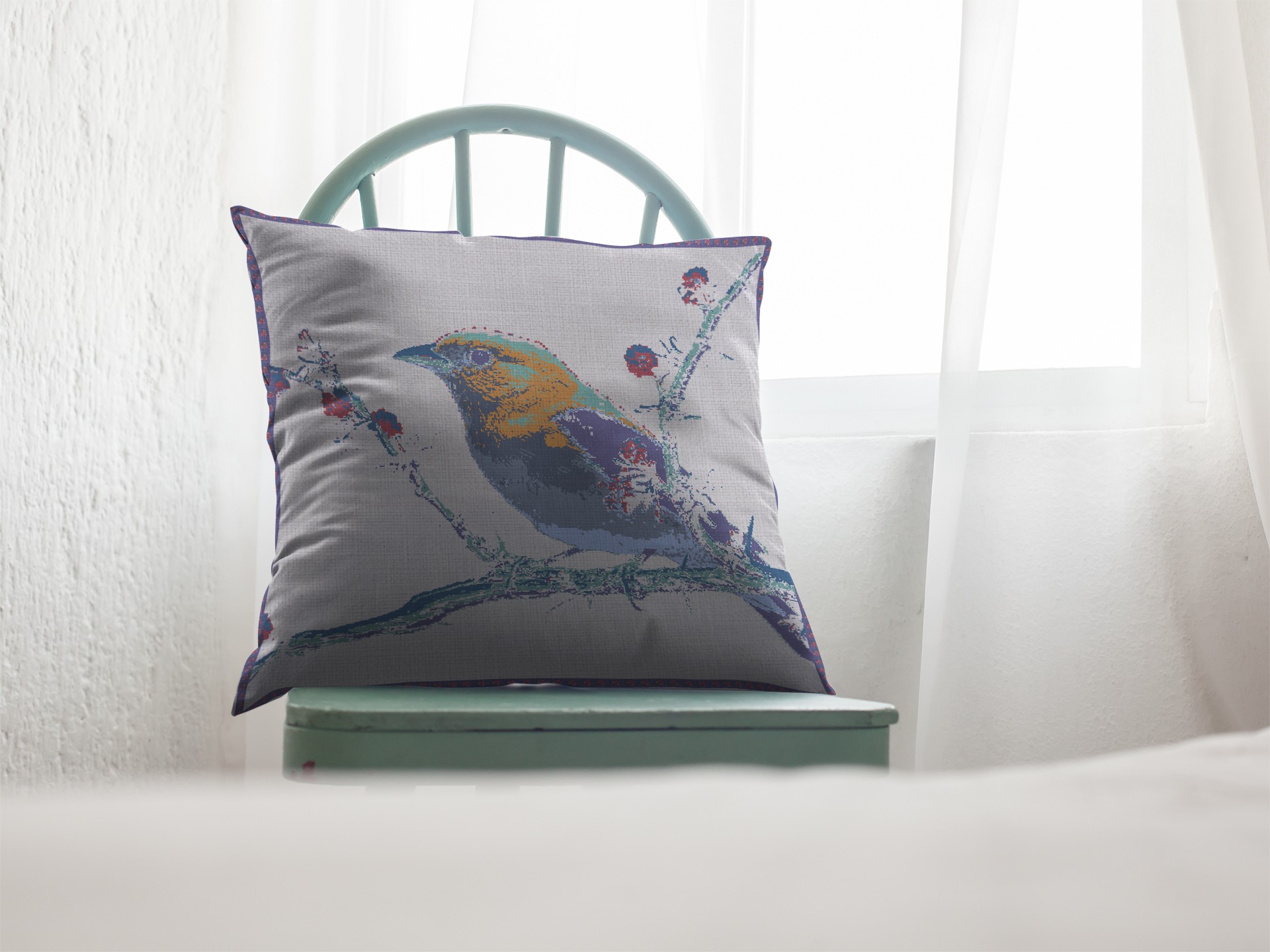 white robin suede throw pillow, 18 blue white robin suede, robin suede throw pillow, suede throw pillow, blue white robin suede throw |