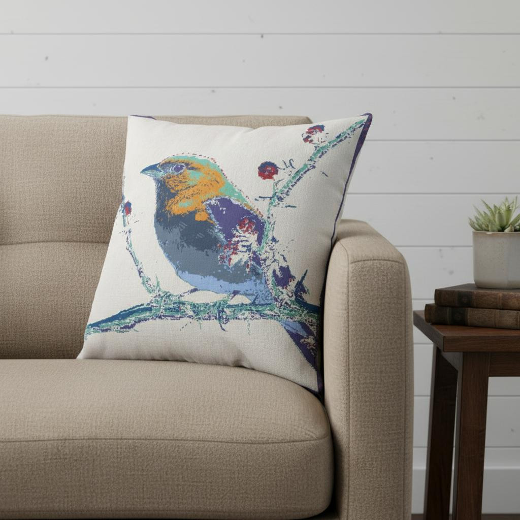 Give your living space a touch of nature with this alluring Blue White Robin Suede Throw Pillow that features an artistic pattern to make a statement in the room. Showcasing a colorful robin in shades of blue, purple, yellow, and green, perched atop a blue-toned branch on a white background, this pillow is bound to draw the eyes and induce a cheerful atmosphere in your modern or bohemian home. Crafted with high-quality suede fabric, this eco-friendly pillow gives off a luxurious appearance with a silky-smooth finish while ensuring long-lasting durability. This blown and closed pillow features high-quality poly fill insert ensuring only the softest and cuddliest experience whilst also being easy to clean. Add a sense of warmth and color to your living room with this artful throw pillow on the sofa or couch. 18” x 18” x 5”