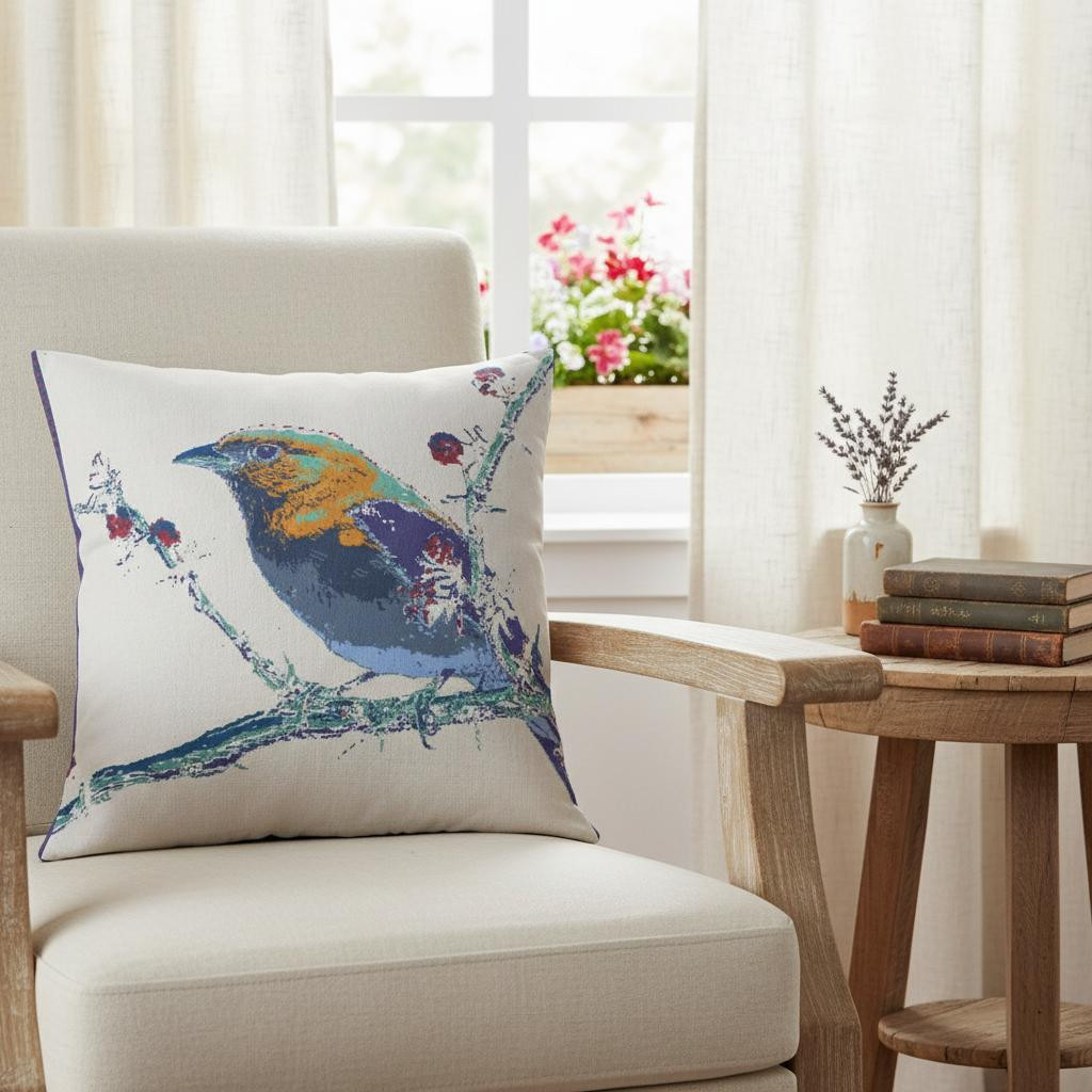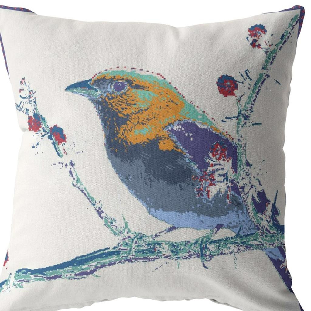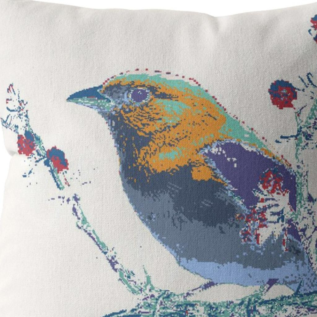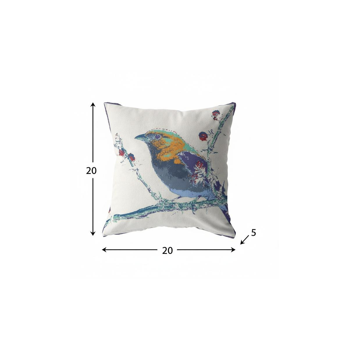 Give your living space a touch of nature with this alluring Blue White Robin Suede Throw Pillow that features an artistic pattern to make a statement in the room. Showcasing a colorful robin in shades of blue, purple, yellow, and green, perched atop a blue-toned branch on a white background, this pillow is bound to draw the eyes and induce a cheerful atmosphere in your modern or bohemian home. Crafted with high-quality suede fabric, this eco-friendly pillow gives off a luxurious appearance with a silky-smooth finish while ensuring long-lasting durability. This blown and closed pillow features high-quality poly fill insert ensuring only the softest and cuddliest experience whilst also being easy to clean. Add a sense of warmth and color to your living room with this artful throw pillow on the sofa or couch. 20” x 20” x 5”