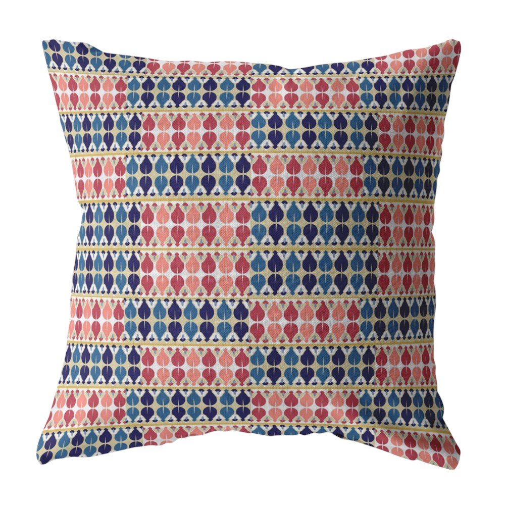 The vibrant colors and captivating pattern of this Red Blue Spades Suede Throw Pillow will create an eye-catching transitional aesthetic in your living room. The decorative pillow features a mesmerizing spade print in recurring patches of blue and red with gold accents that give it a modern edge. The smooth and silky texture of the suede fabric provides an opulent and sumptuous look while promising long-lasting durability to serve you for years. Featuring a soft polyfill insert, this eco-friendly throw pillow is not only durable but also very plush, fluffy, and super comfortable to lean on. The trendy colors and patterns give this decorative pillow an elegant look while having a bohemian essence to perfectly complement modern and transitional décors. 20” x 20” x 5”