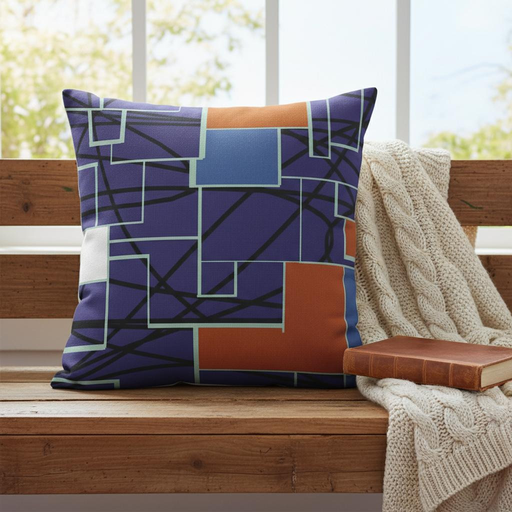 Bold colors and clean edges make this Navy Puzzle Piece Suede Throw Pillow the archetype of modern décor to add to your home. The dark navy base combined with orange accent patches against geometric lines creates an intriguing visual for your guests. This blown pillow is crafted from premium-quality suede fabric which is characterized by its soft and smooth surface texture for a delicate feel. With a durable polyfill insert, this pillow feels super soft with a fluffy look that makes it an excellent decorative accent in terms of fashion and functionality. Revamp the look of your home with this sophisticated throw pillow that can be paired with any modern or contemporary interior style. 20” x 20” x 5”