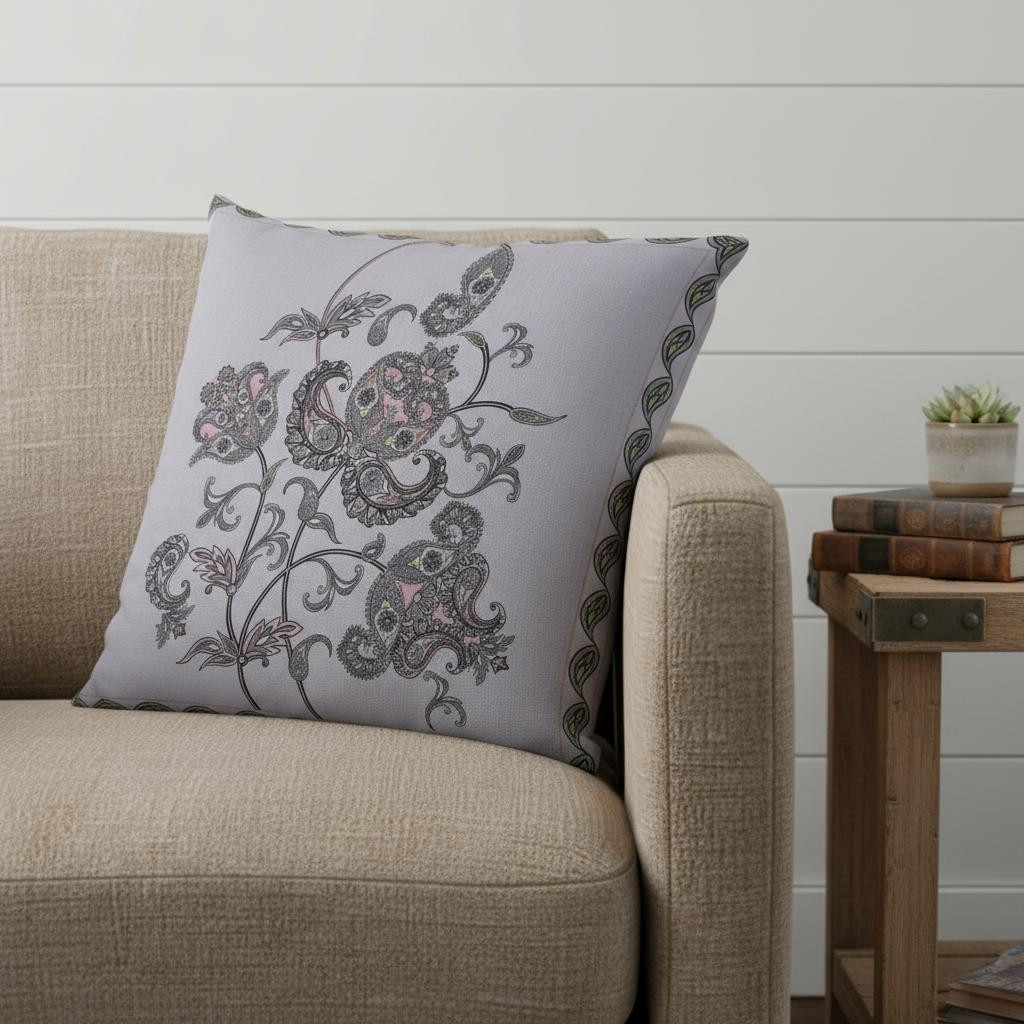white wildflower suede throw pillow, wildflower suede throw pillow, 18 gray white wildflower suede, gray white wildflower suede throw, suede throw pillow |