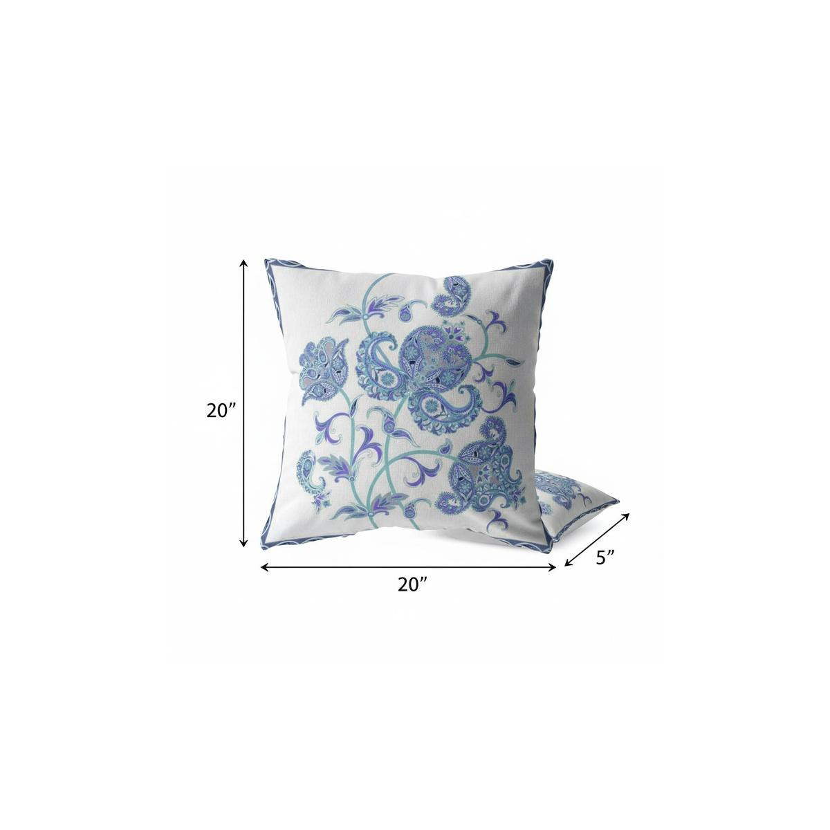 Enliven your living space with this chic Blue White Wildflower Suede Throw Pillow in all of its boho beachy glory. The cool-toned wildflowers in blue with hints of turquoise against the neutral white background represent a relaxing piece of art that will enhance the boho-chic aesthetic of your home. This blown pillow is crafted from premium-quality suede fabric which is characterized by its soft and smooth surface texture for a delicate feel. With a polyester filling insert as soft as the clouds, the blown and closed pillow is perfectly suited for you to rest your head on. Bring the tranquil feel of the ocean alongside a bohemian style into your home with this stunning throw pillow on the sofa or couch. 20” x 20” x 5”
