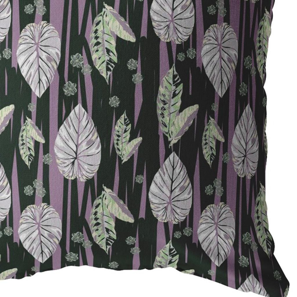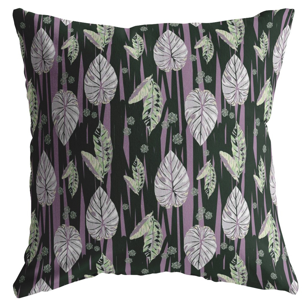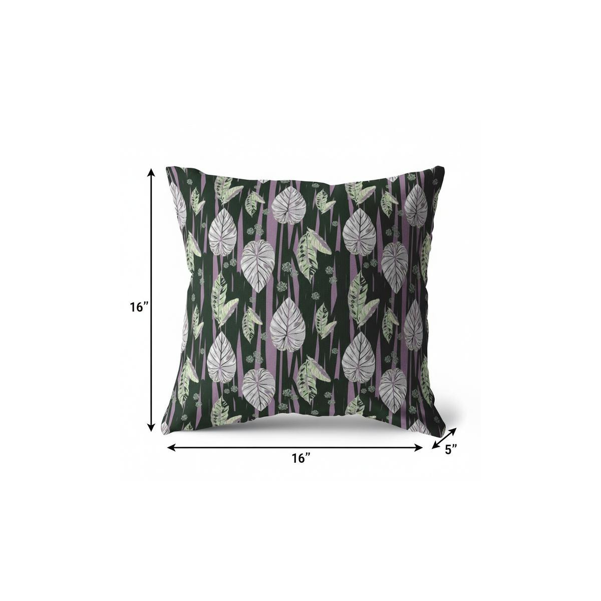 Upscale your living space in a heartbeat with this extraordinary Black Purple Fall Leaves Suede Throw Pillow featuring elements of nature in a modern fashion. Creating a stunning visual impact, the black backdrop flaunts tropical leaves and vines in gorgeous bright lilac and soft green tones to complement it. The deluxe suede fabric featured on the throw pillow gives it a premium feel while also being durable to last for a long time. The versatile blown and closed pillow is also soft to the touch, given its lush polyfill insert, making it super fluffy and comfortable. This versatile decorative pillow is sure to light up any room, whether your style is bohemian, coastal, or bohemian. 16” x 16” x 5”