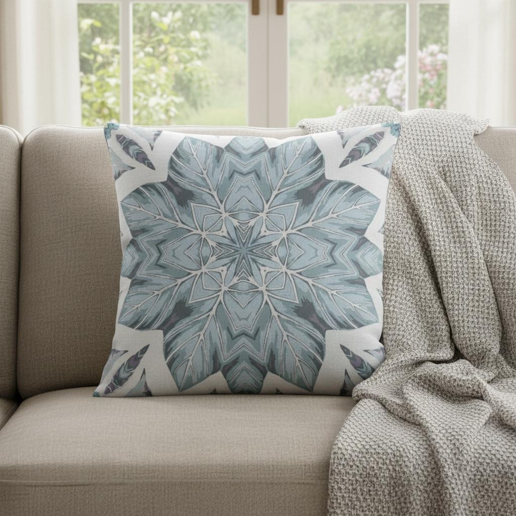 Entrance your guests by placing this stunning Blue Floral Forest Suede Throw Pillow in your modern home. A blooming ice blue flower encapsulated in the center of the pillow against streaks of white makes it seem as though you are lost in a snowy forest. The velvety-soft aesthetic of the eco-friendly suede fabric provides a classy look while ensuring durability for regular use. The premium quality soft polyfill insert makes the pillow utterly comfortable with a luxurious feel on the touch. Emphasize the clean lines of your modern interior with this sophisticated throw pillow that stands out with its design and color. 16” x 16” x 5”