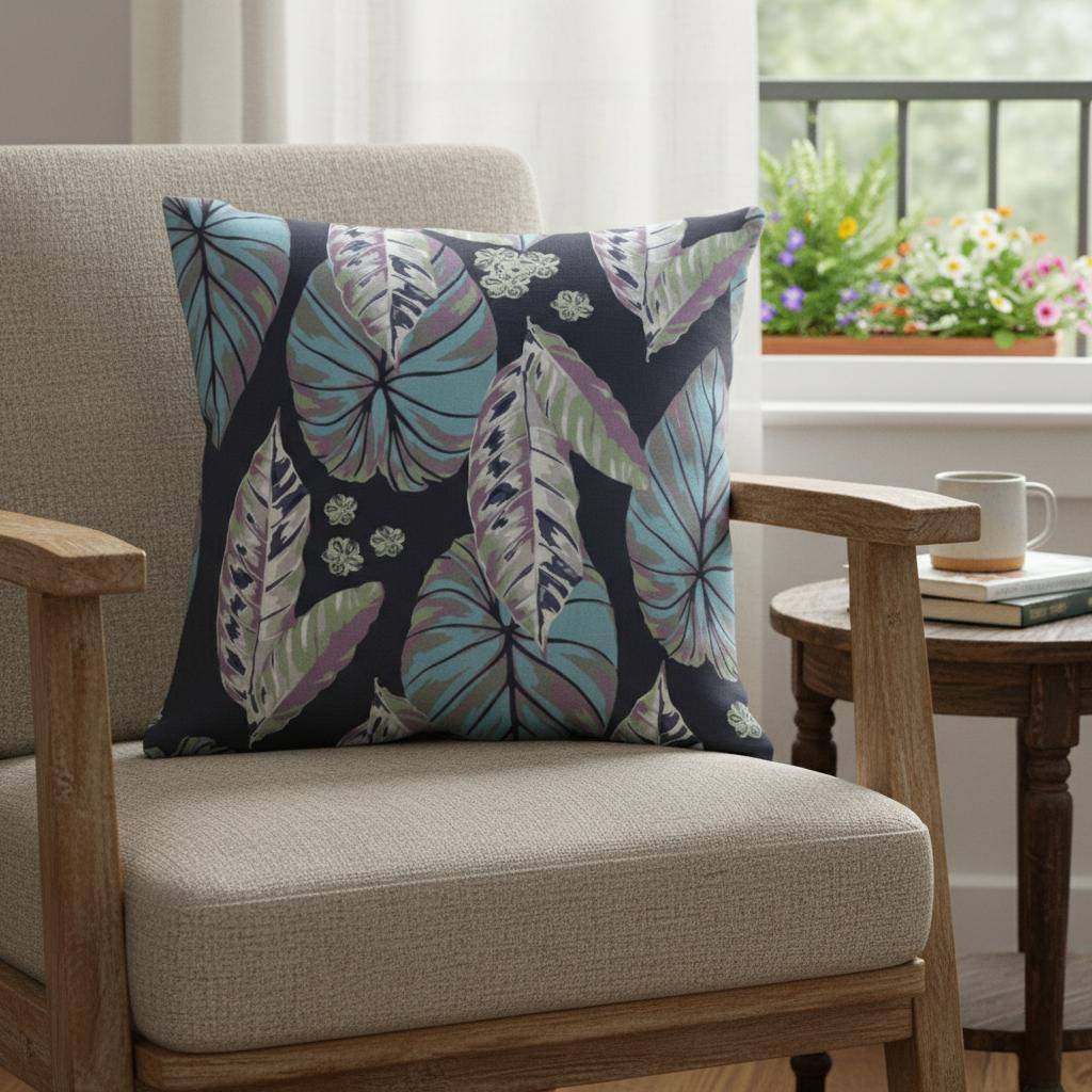 tropical leaf suede throw pillow, leaf suede throw pillow, 20 blue purple tropical leaf, purple tropical leaf suede throw, blue purple tropical leaf suede |
