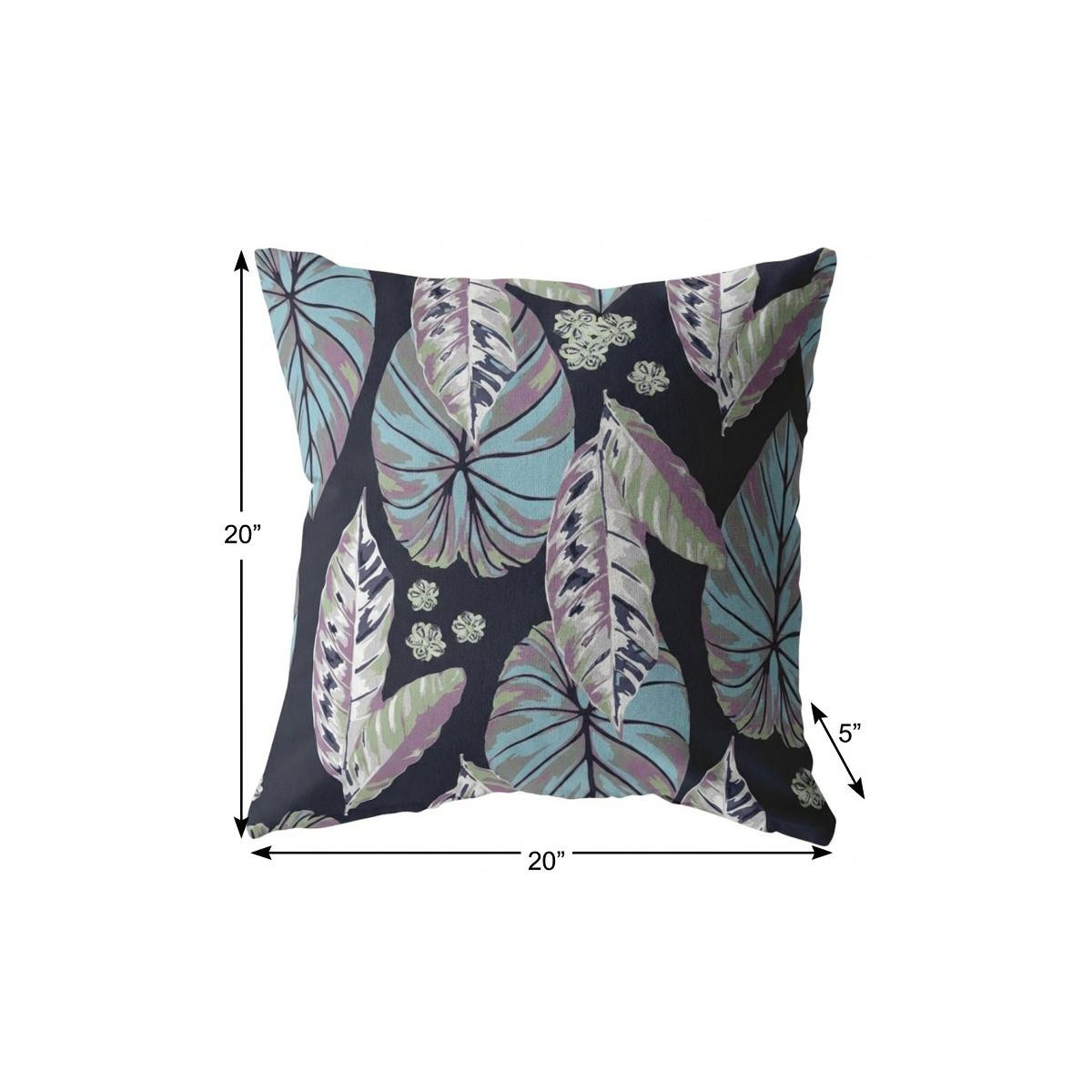 Feel as if you’re lost in a dusky tropical wonderland with this charming Blue Purple Tropical Leaf Suede Throw Pillow. The leafy foliage in shades of baby blue paired with iris purple cast a lovely contrasted visual over a solid black base. Made to experience a sense of luxury, this pillow is crafted from the robust yet soft-to-the-touch suede fabric that is known for its appealing look and texture. This blown and closed pillow features a high-quality polyfill insert from optimum comfort while making the piece super fluffy for a luxurious feel on the touch. If your décor is missing an accent that goes well with coastal, tropical, and bohemian styles, then this decorative throw pillow is just for you. 20” x 20” x 5”