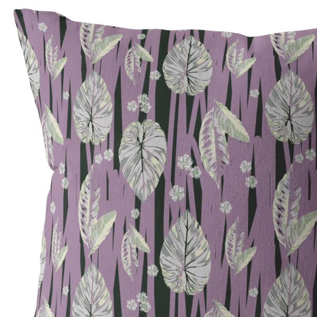 Promote a peaceful ambiance in your living space with this Lavender Black Fall Leaves Suede Throw Pillow that features a relaxing palette to bring a tropical essence to your home. The fallen leaves in opaque white are beautifully printed on lavender and black base, resembling a piece of art on a canvas. With high-quality broadcloth fabric in the making, this pillow ensures long-lasting durability with a soft and smooth surface texture that can perfectly complement your indoor settings. The luxurious fluffy look and plush feel come from the durable polyfill insert that makes this blown and closed pillow super cuddly and comfortable to rest your head on and support good posture. If you want a delightful accent piece to complement your modern, tropical, or coastal home, opt for this decorative throw pillow to spruce up your home. 16” x 16” x 5”