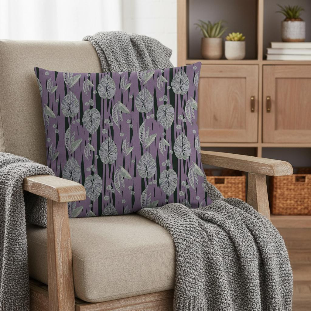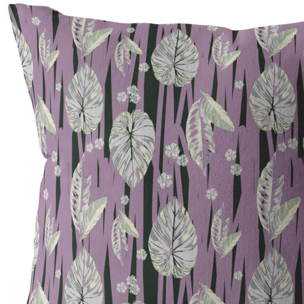 Promote a peaceful ambiance in your living space with this Lavender Black Fall Leaves Suede Throw Pillow that features a relaxing palette to bring a tropical essence to your home. The fallen leaves in opaque white are beautifully printed on lavender and black base, resembling a piece of art on a canvas. With high-quality broadcloth fabric in the making, this pillow ensures long-lasting durability with a soft and smooth surface texture that can perfectly complement your indoor settings. The luxurious fluffy look and plush feel come from the durable polyfill insert that makes this blown and closed pillow super cuddly and comfortable to rest your head on and support good posture. If you want a delightful accent piece to complement your modern, tropical, or coastal home, opt for this decorative throw pillow to spruce up your home. 20” x 20” x 5”
