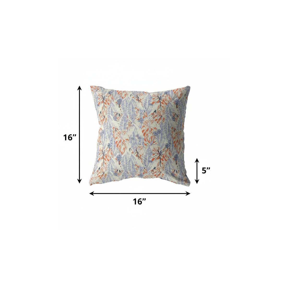 Bring a carefree and relaxed ambiance to your living room with this Orange Lavender Tropics Suede Throw Pillow that radiates a breezy coastal style. An overlapping print of foliage in contrasting hues of orange and lavender creates the perfect visual of a serene coastal vibe. Made to experience a sense of luxury, this pillow is crafted from the robust yet soft-to-the-touch suede fabric that is known for its appealing texture. The elegant feel of the blown and closed pillow comes from the plush polyfill insert giving the piece a fluffy look. Make this decorative throw pillow a beachy accent piece amidst your modern décor to evoke a sense of tranquility in the room. Make this decorative throw pillow a beachy accent piece amidst your modern décor to evoke a sense of tranquility in the room. 16” x 16” x 5”