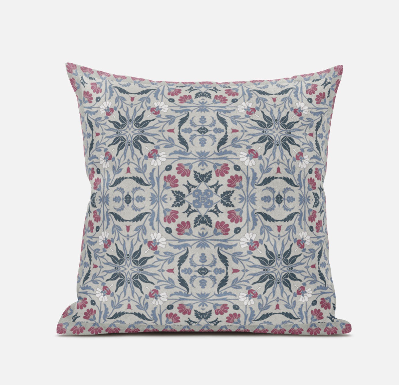 Bring a bit of fashion and zip to your space with this eye-catching and comfy 16" x 16" muted green grey indigo paisley blown seam suede throw pillow. For anyone that loves to decorate or accent their space with color and texture. Decorative pillows are a great way to change up the look and feel of your space easily and quickly. 5" H x 16" W x 16" D