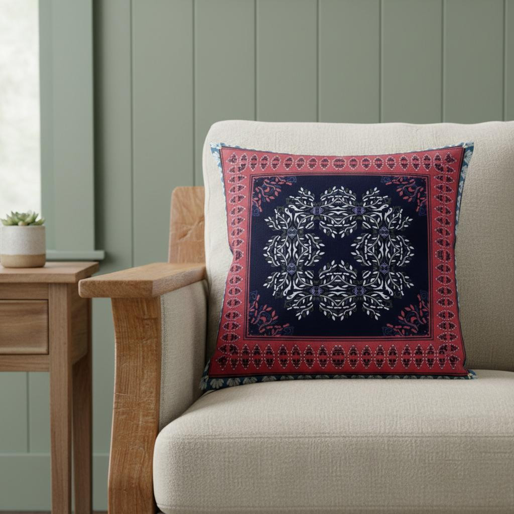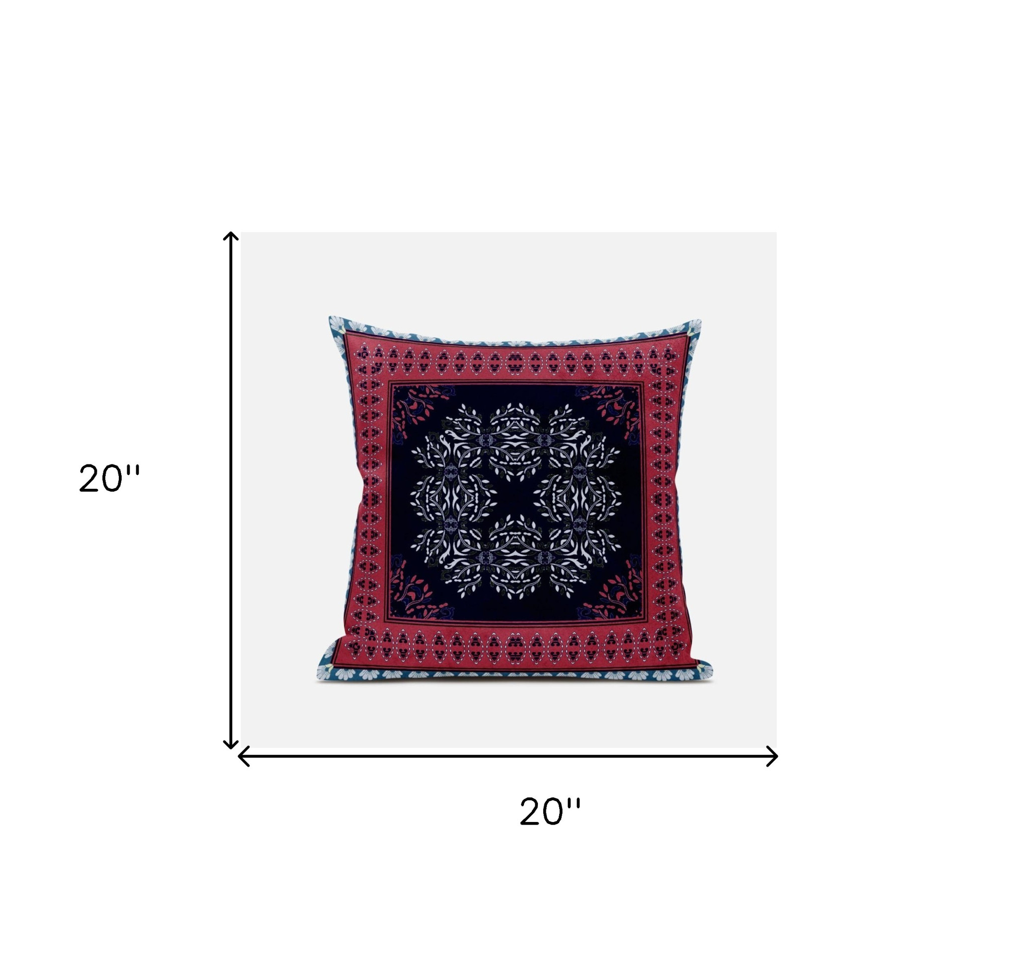 Unique and decorative, this comfortable 20" x 20" red black geometric blown seam suede throw pillow will leave a lasting impression. Decorative throw pillows not only add color and dimension to your space but can be comfy and supportive when you are lounging and cuddling as well. Decorative pillows are a great way to change up the look and feel of your space easily and quickly. 5" H x 20" W x 20" D