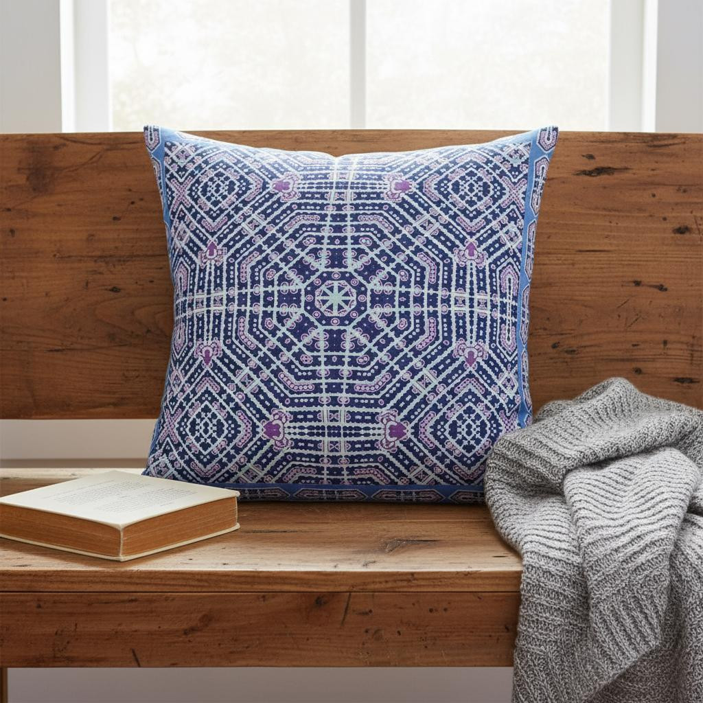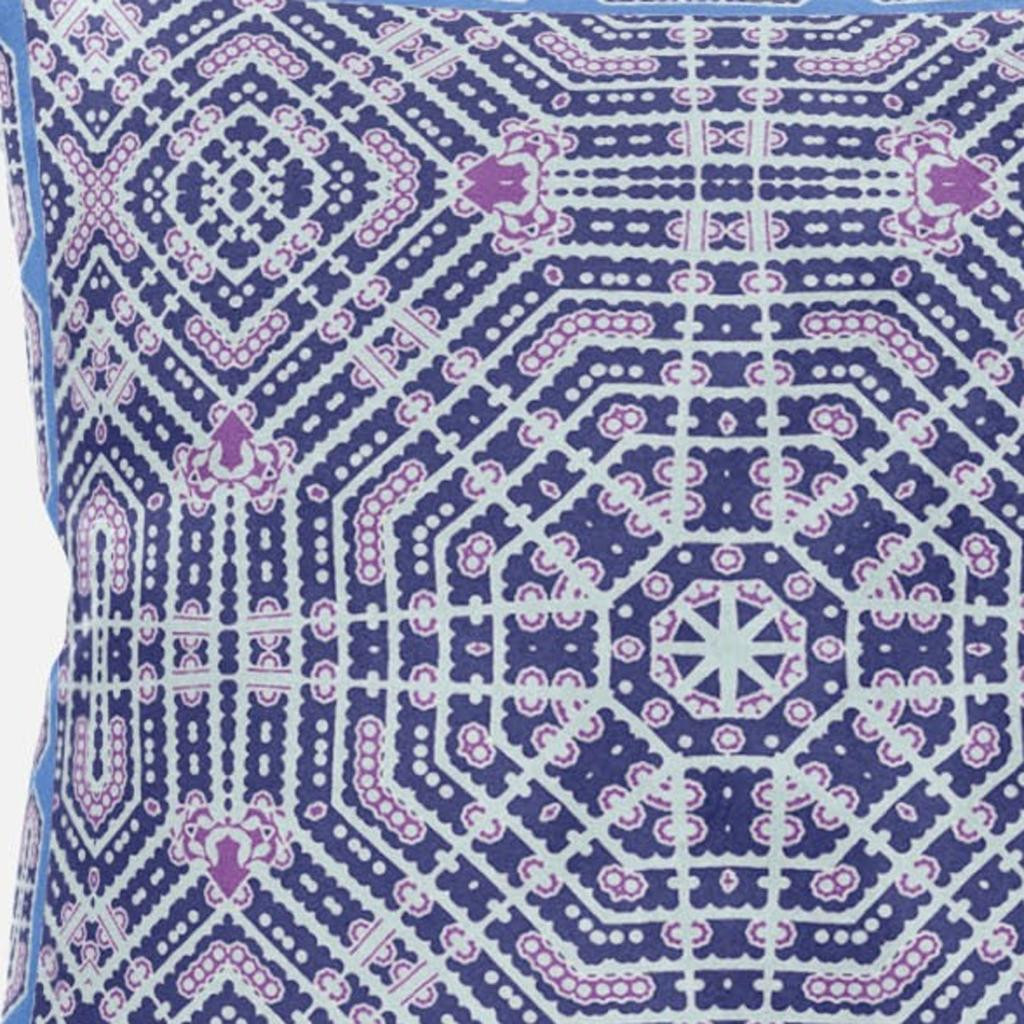 Bring a bit of fashion and zip to your space with this eye-catching and comfy 18" x 18" indigo hot pink geometric blown seam suede throw pillow. For anyone that loves to decorate or accent their space with color and texture. Decorative pillows are a great way to change up the look and feel of your space easily and quickly. 5" H x 18" W x 18" D