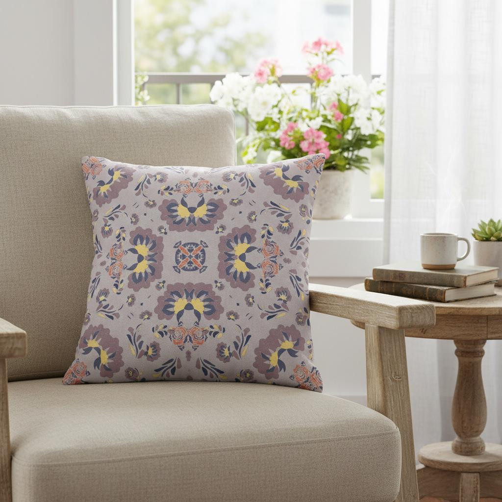 | Keywords: | seam suede throw pillow, blown seam suede throw pillow, suede throw pillow, purple yellow floral blown seam, 18" X 18" muted purple yellow floral |