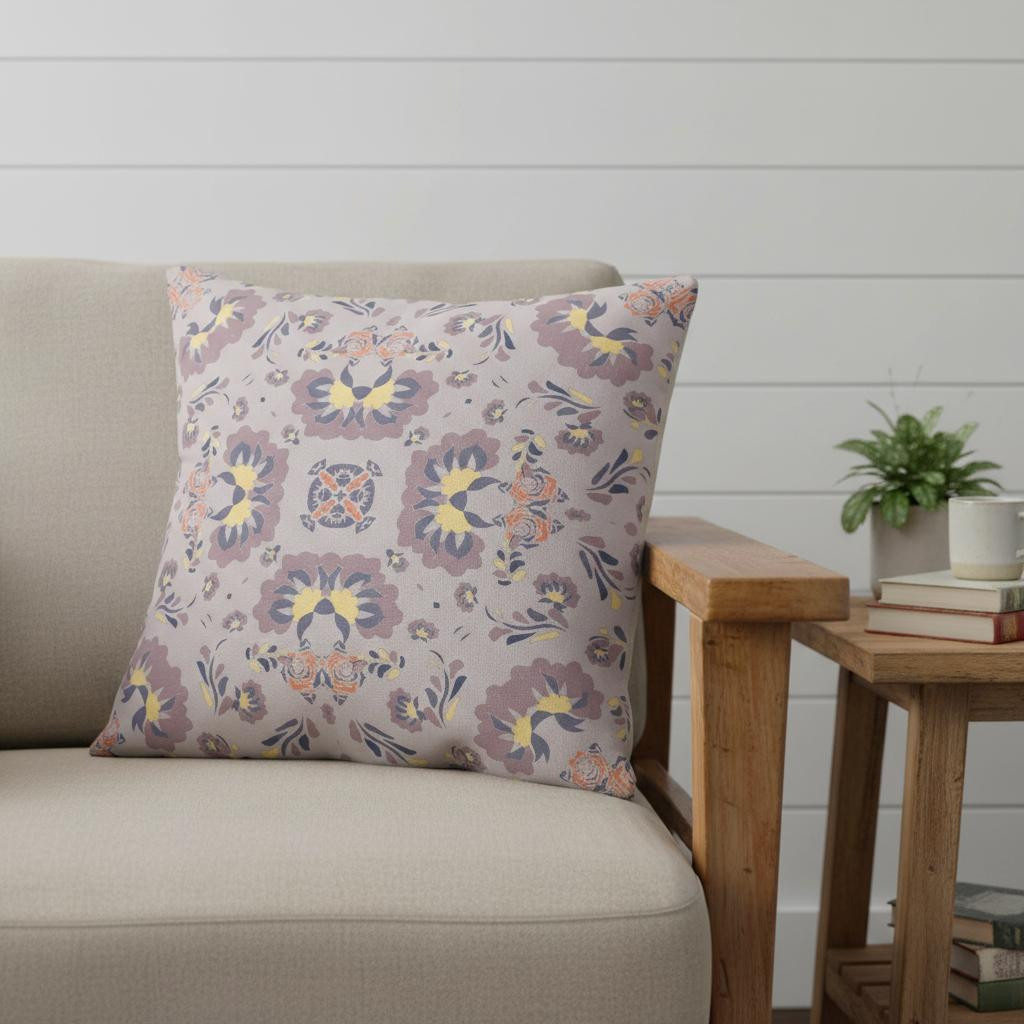 | Keywords: | seam suede throw pillow, blown seam suede throw pillow, suede throw pillow, purple yellow floral blown seam, 20" X 20" muted purple yellow floral |