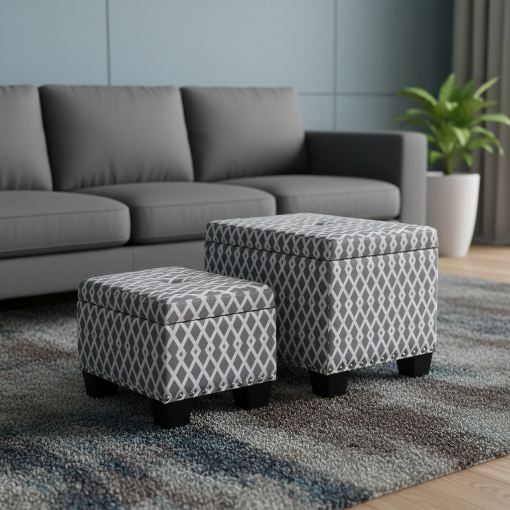 gray white diamonds storage ottomans, white diamonds storage ottomans, diamonds storage ottomans, gray white diamonds storage, set gray white diamonds storage |