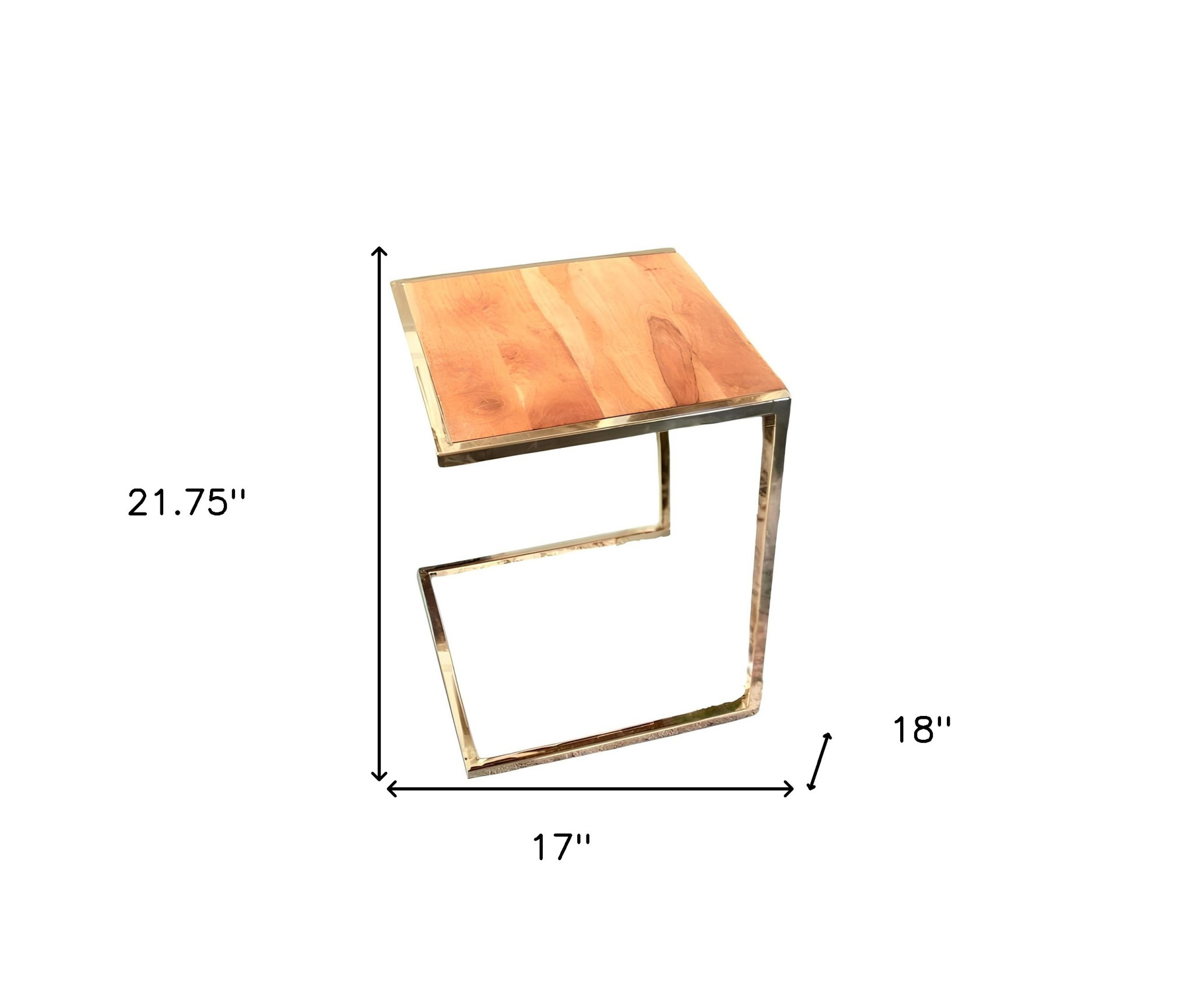 These Set of Three Stylish Wood and Metal C Shaped Nesting End Tables are perfect for any room in your home and for any setting. Made from high-quality metal and mango wood, this compact set of nesting tables slides easily under each other and has a unique C-shape that makes it easy to move around. The C-shape leaves three sides of this table open, making it perfect to use as a serving table or to hold home decor items, flowers, books, and lamps. The square wood panel on the tabletop also perfectly complements the gold finishing on the sides and legs. Display together or separately, this set of three gives you multiple ways to use them. 21.75” x 17” x 18”