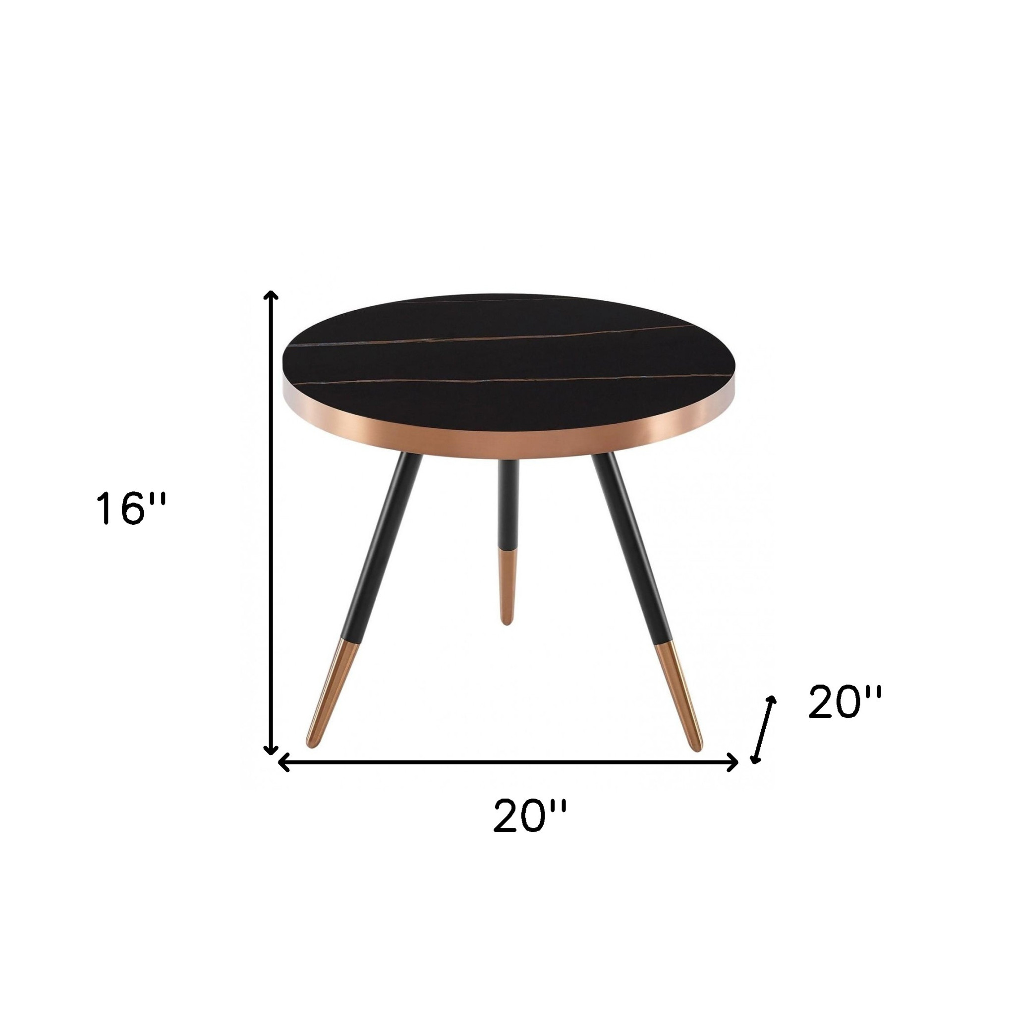 This stylish 20-inch black and gold faux marble and metal round coffee table is sure to inspire compliments no matter where it sits. A black and gold coloration runs throughout this good looking metal and faux marble table. The black faux marble top of this table is a nice visual contrast to the high quality, black and gold metal of the base. This round table features a fresh and stylish shape to give your room a visually pleasing accent. It has an attractive design that will definitely breathe some fresh air into your interior. 16-inch h x 20-inch w x 20-inch d.