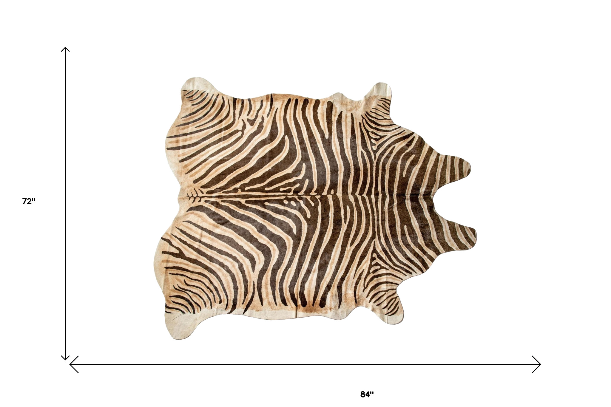 Set an inviting tone in your space with this 6' x 7' zebra chocolate and natural cowhide handmade area rug. This novelty shape rug in african zebra chocolate and natural features a animal print that combines a good looking print with a unique shape. The mix of shape, color, and design gives this rug refreshing visual interest. Handcrafted by skilled artisans, this natural cowhide rug is genuine and unique. No two will be exactly alike. Place this area rug against a hardwood or tile floor and it will enliven your living space with style and sophistication. 0.25" H x 72" W x 84" D