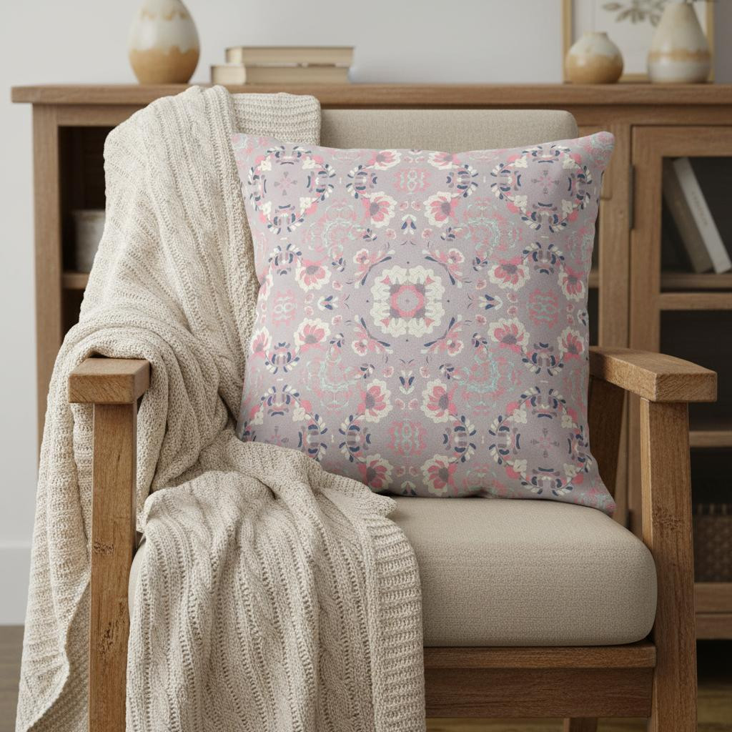 blown seam suede throw pillow, seam suede throw pillow, muted pink floral blown seam, pink floral blown seam suede, floral blown seam suede throw |