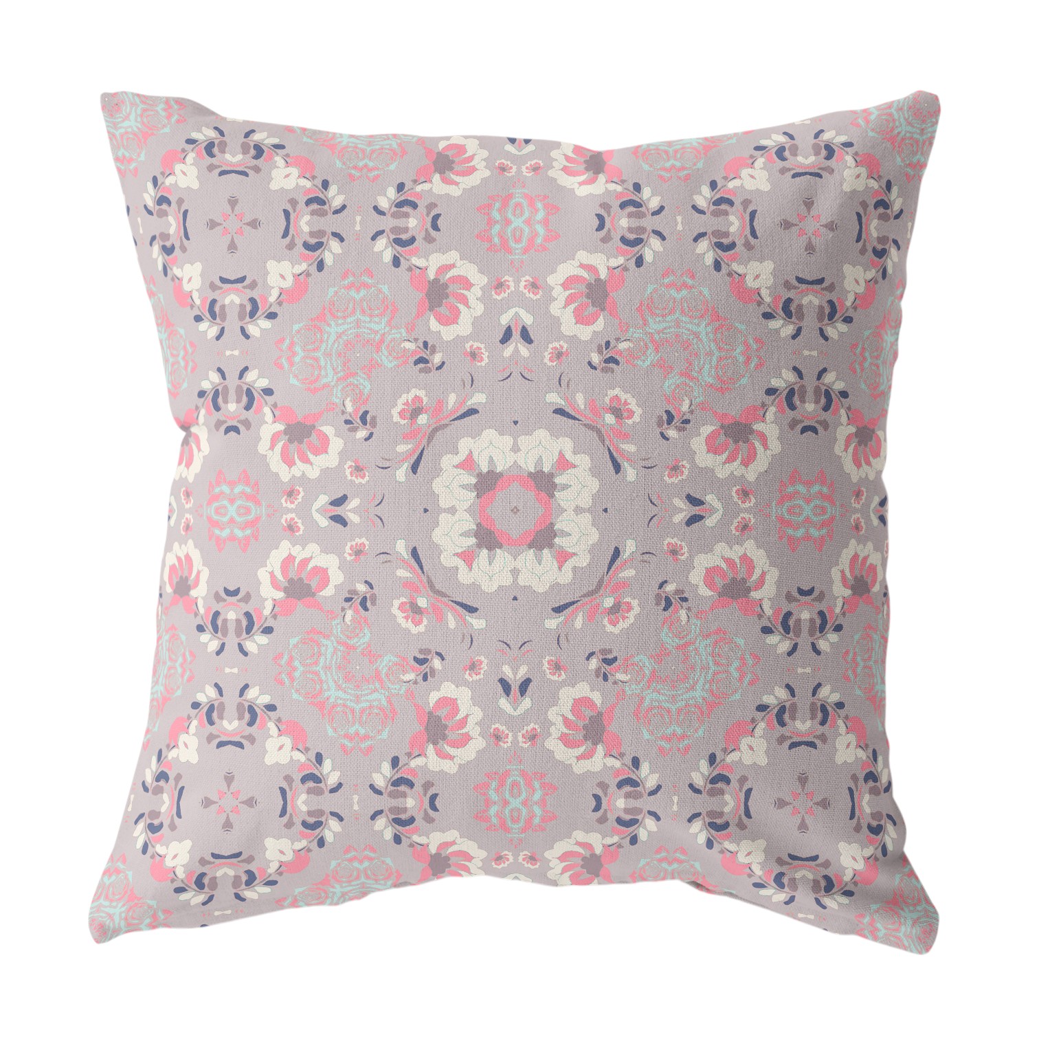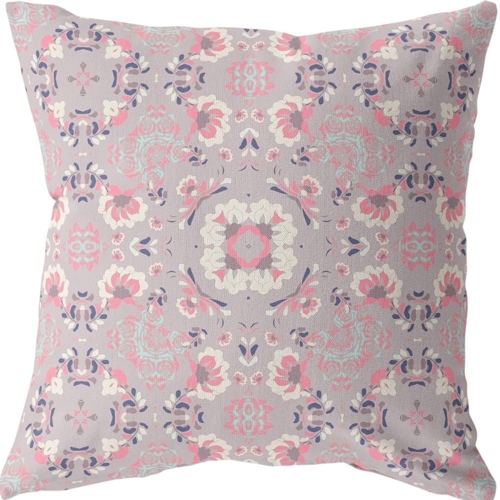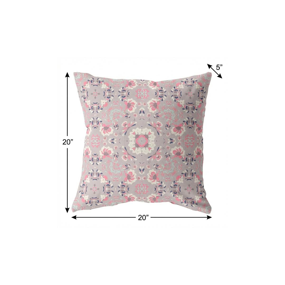 This 20" x 20" muted pink floral blown seam suede throw pillow will add a beautiful decorative accent to your decor. Great to use on its own or mix with other decorations for the perfect look. A great decorative accessory for your favorite chair, to accent your sofa, or to use as part of your bed ensemble. 5" H x 20" W x 20" D