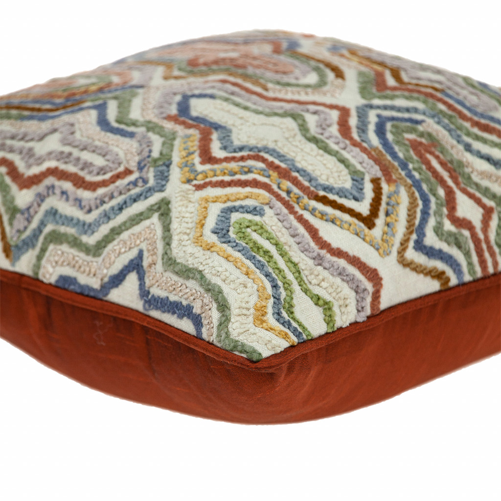 Unique and decorative, this comfortable 18-inch beige and brown cotton throw pillow with embroidery will leave a lasting impression. The beige and brown coloring of the extremely durable and long lasting cotton will add dimension and texture to your space. Embroidered decorative accents add some high end and hand-crafted textural designer touches. This soft polyfill filled pillow not only is decorative but made to be comfy and cozy all day long. For anyone that loves to decorate or accent their space with color and texture. A great decorative accessory for your favorite chair, to accent your sofa, or to use as part of your bed ensemble. 18-inch H x 18-inch W x 6-inch D