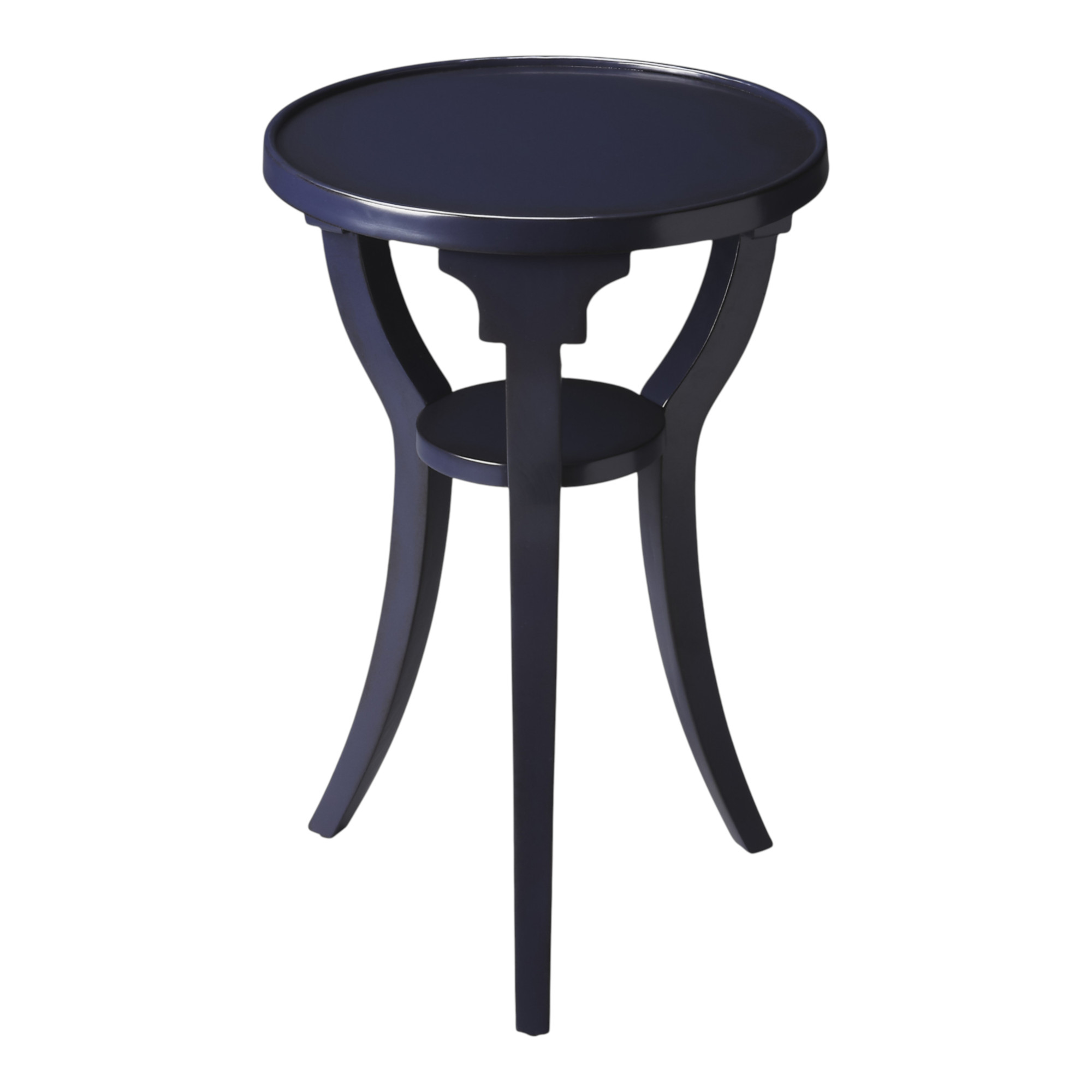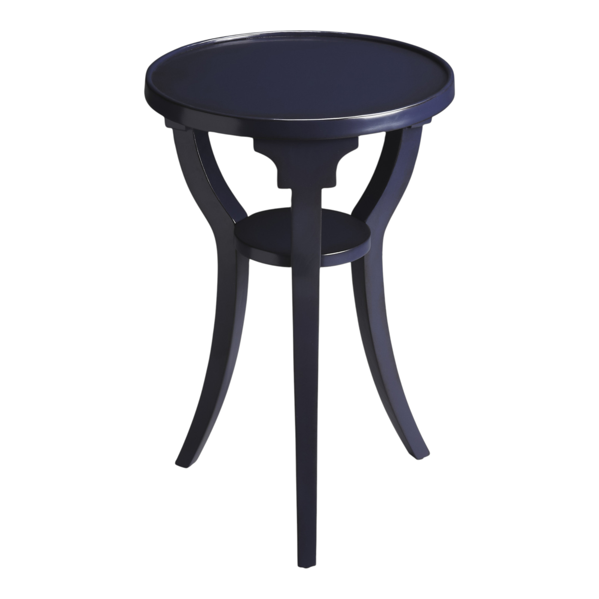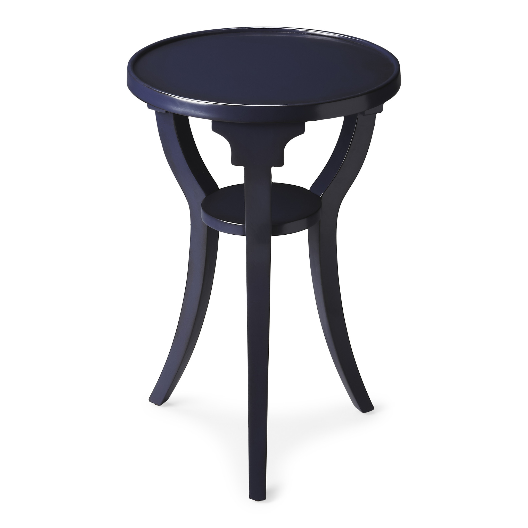 Optimize your space and add some charm to your room with the 24" blue manufactured wood round end table with shelf. The blue coloration runs throughout this good looking solid wood and manufactured wood table. Complete with a purposefully distressed finish, this table has an aged, vintage, and rustic feel. Help to keep your space organized with the included single shelf. A great accent on either side of the sofa or bed, this adorable end or side table is just what you need. You can match it with other pieces to get the ideal look for your place. 24.25" H x 15.75" W x 15.75" D