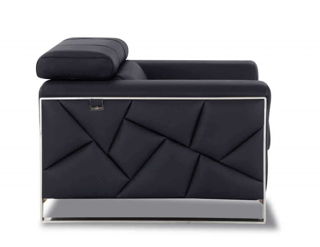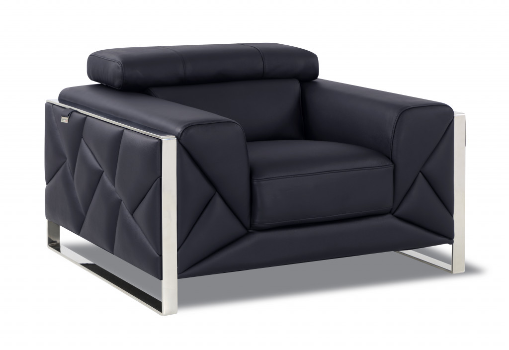 Fill your living room, bedroom, or office with fashionable seating options with this 48-inch black and silver italian leather club chair. This sturdy italian leather upholstered club chair comes in a chic solid black color to give your space just the right look. Giving the chair stability and structure, the inner frame is constructed with high quality solid and manufactured wood, includes comfy armrests, and features a tight back that comes complete with soft and comfortable cushioning. 35-inch h x 48-inch w x 43-inch d.