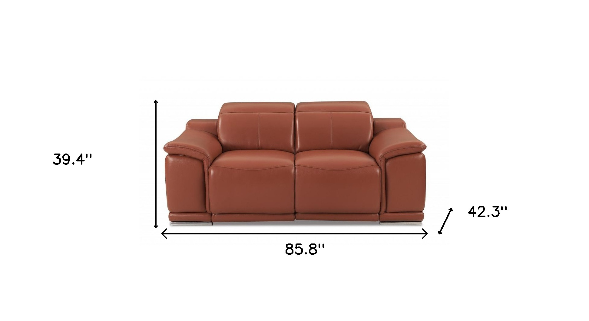 When it comes to indoor seating, this two piece indoor camel italian leather five person seating set has everything you need to get set and ready to relax. Prepare to enter the realm of ultimate relaxation with this reclining sofa that offers unparalleled comfort and luxurious lounging. Upholstered in supple and luxurious genuine leather, this set has a rich and warm appeal. Coil spring seat construction provides excellent comfort by offering a responsive and supportive seating experience, gently contouring to the body's natural curves. The inclusion of a loveseat into your mix allows a fashionable seating option in a compact design. Ready to re-decorate. This set is an obvious choice to fill your space with style and class. 39.4-inch H x 85.8-inch W x 42.3-inch D