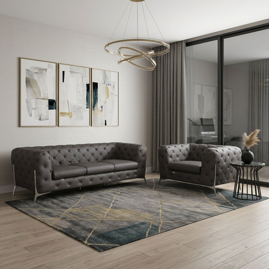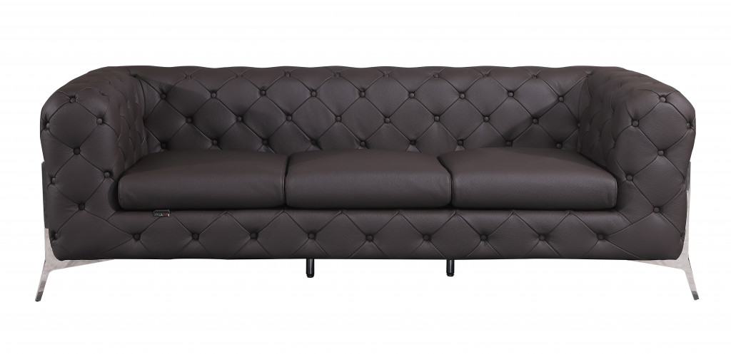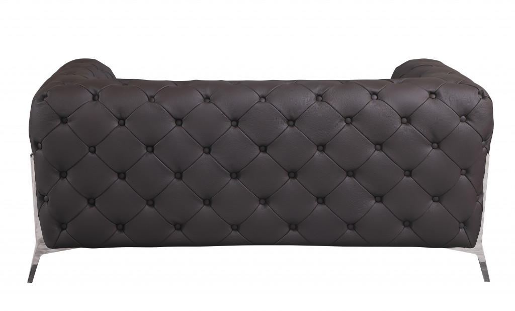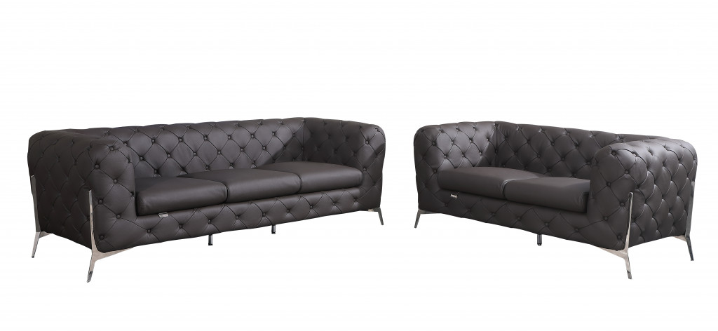 Prepare to amaze even the most discerning critics with our two piece indoor brown italian leather five person seating set - the epitome of indoor seating that will leave them speechless. Upholstered in supple and luxurious genuine leather, this set has a rich and warm appeal. Coil spring seat construction provides excellent comfort by offering a responsive and supportive seating experience, gently contouring to the body's natural curves. The tufting technique adds depth and dimension to the cushions, creating a visually interesting and inviting seating surface. The inclusion of a loveseat into your mix allows a fashionable seating option in a compact design. Gather with family and loved ones with this seating set that will bring you all together. 30.5-inch H x 93-inch W x 38-inch D