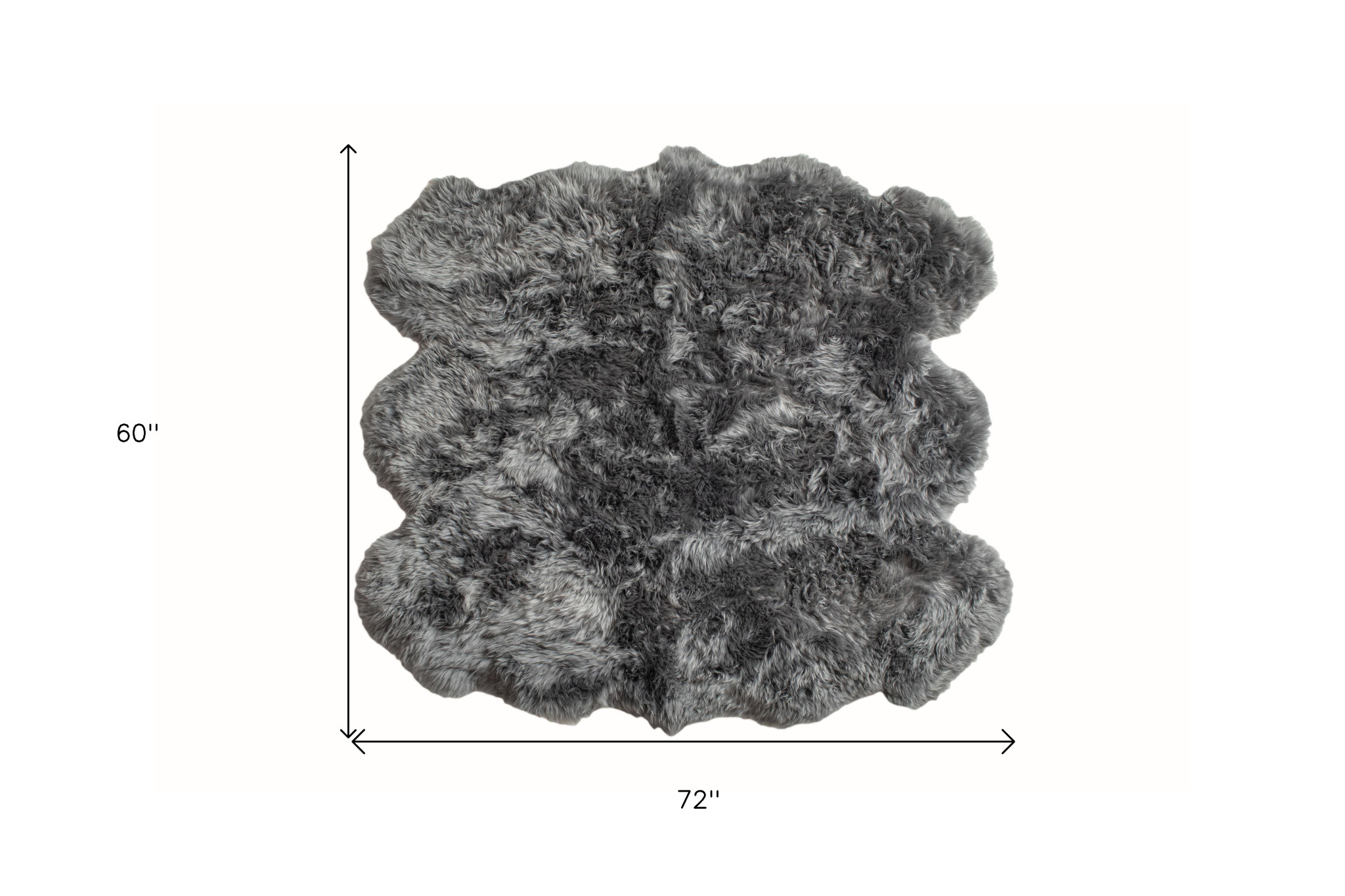 This 5' x 6' grey wool sheepskin handmade area rug, is a great way to add warmth to a room. This novelty shaped solid color rug features a unique shape to grace your floor. Single color rugs are versatile and will blend with any existing decor style. Handcrafted by skilled artisans, this natural sheepskin rug is genuine and unique. No two will be exactly alike. Area Rugs help to give warmth and sense of home to your space. 2.5" H x 60" W x 72" D