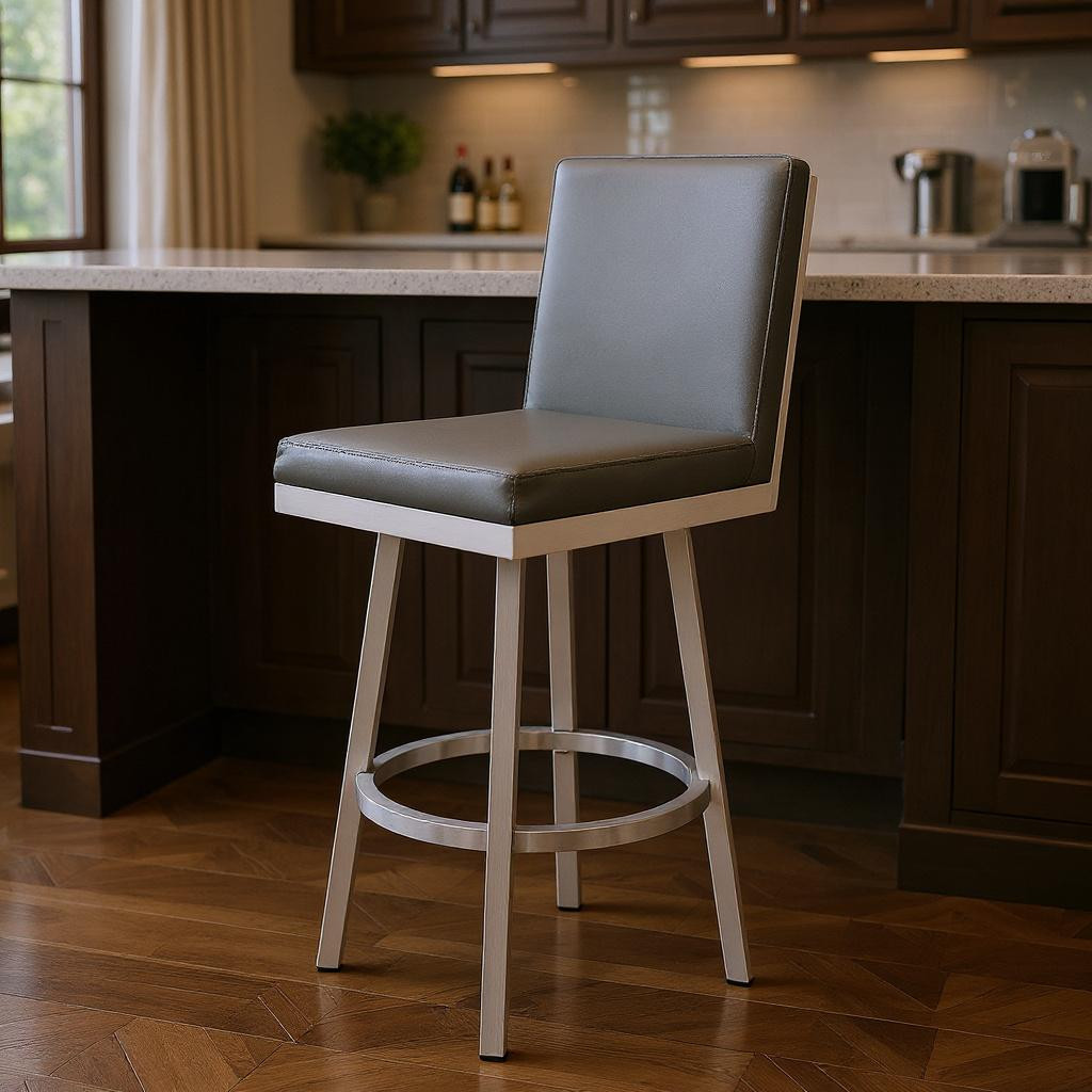 height bar chair footrest, bar height bar chair footrest, bar chair footrest, 30" gray silver faux leather, faux leather iron swivel bar |