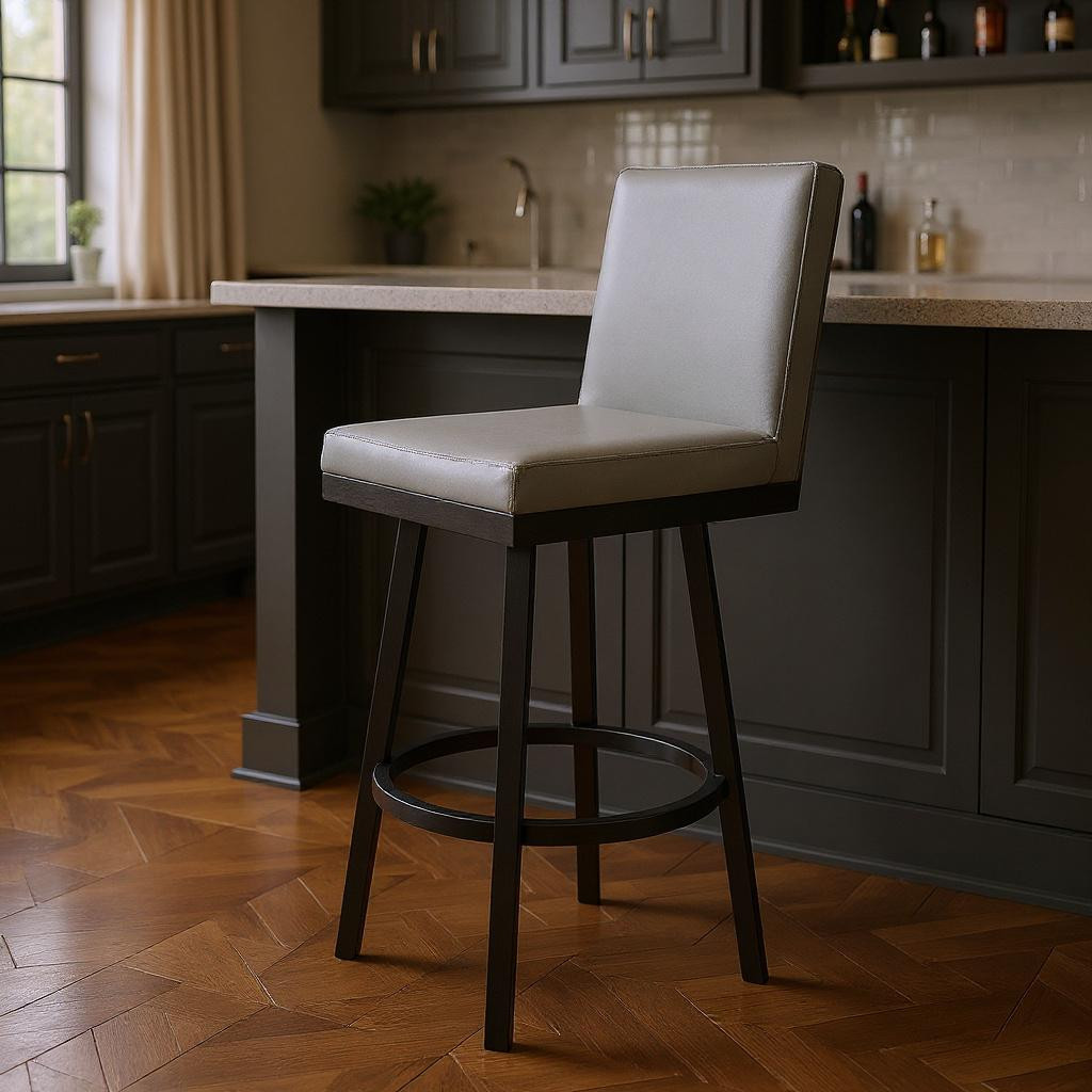 | Keywords: | height bar chair footrest, 30" gray black faux leather, bar chair footrest, faux leather iron swivel bar, swivel bar height bar chair |